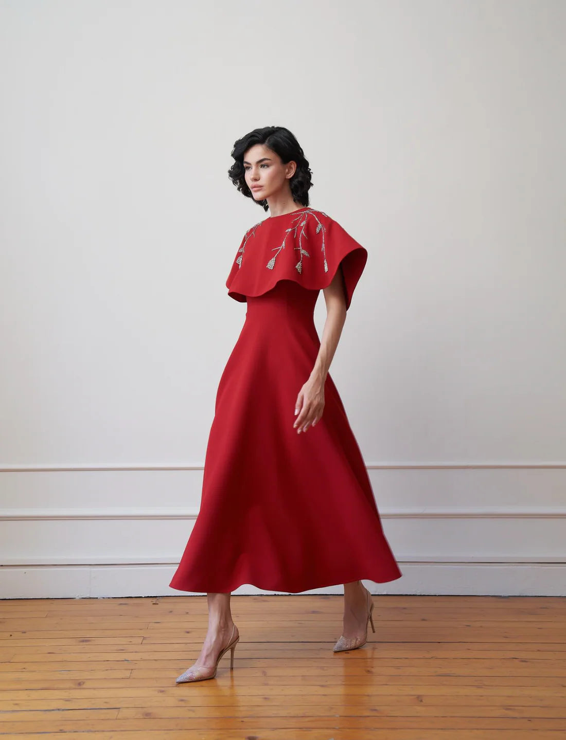 ملاحظة الفستان باللون البرغندي وليس أحمر