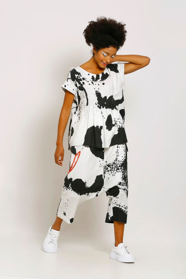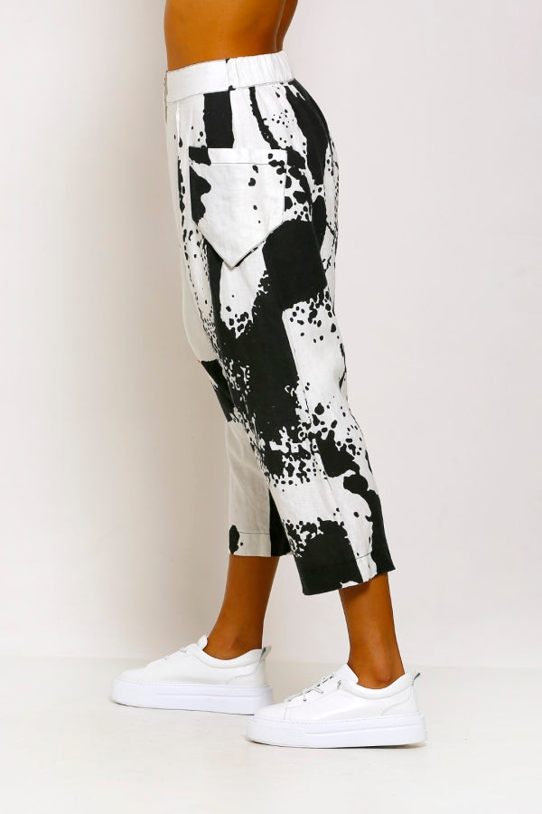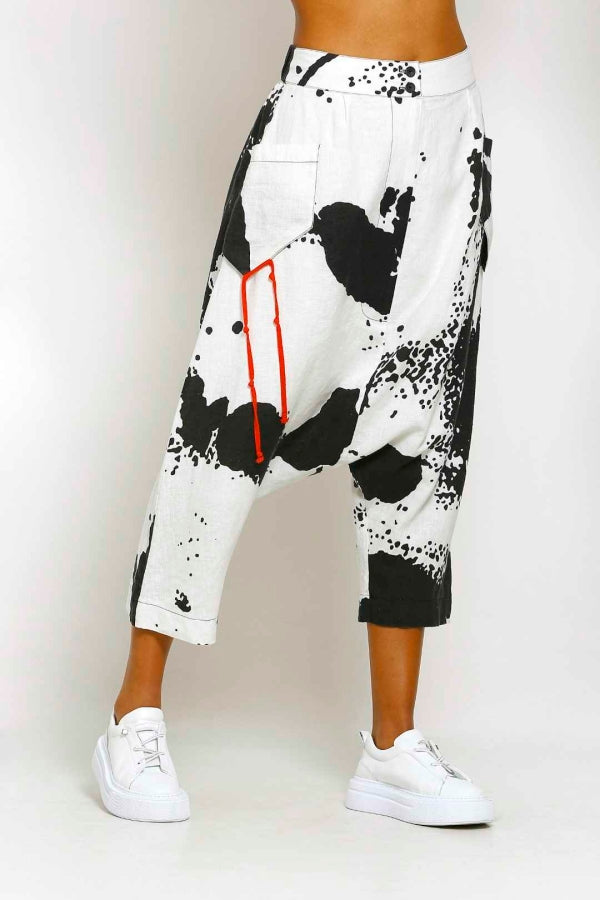 شالوار من الكتان المنقوش