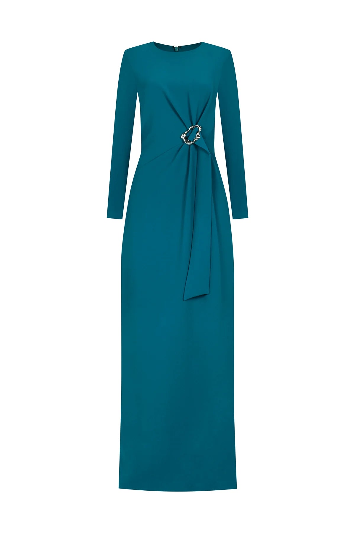 KEMER DETAYLI UZUN KOLLU ABİYE ELBİSE