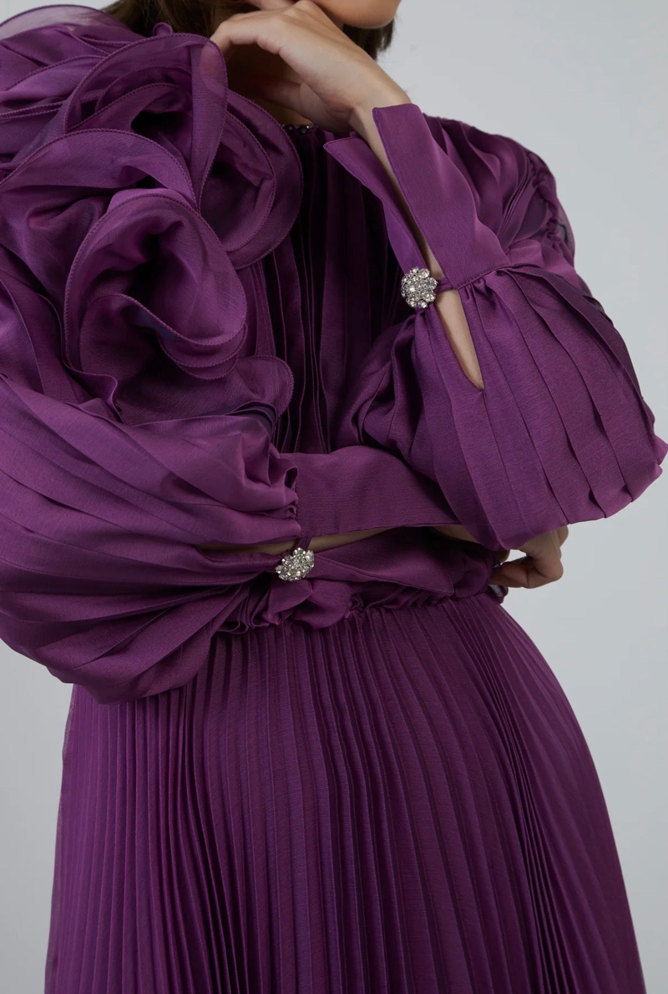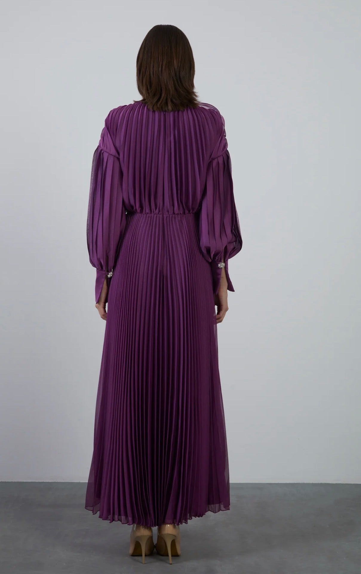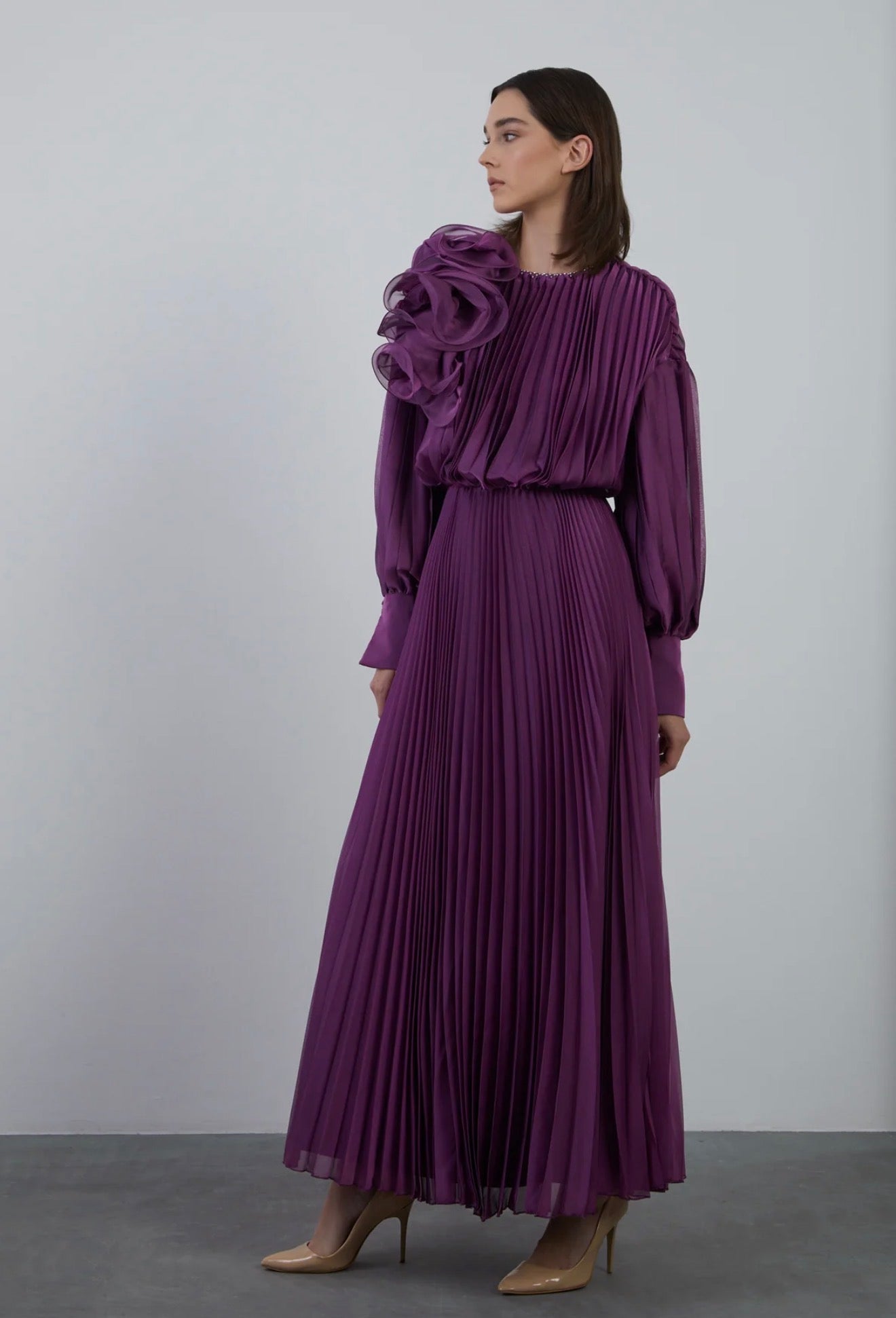 Pliseli Uzun Kloş Abiye Elbise