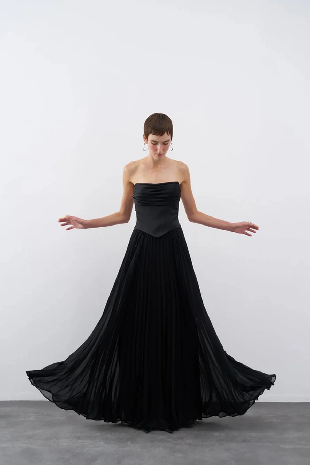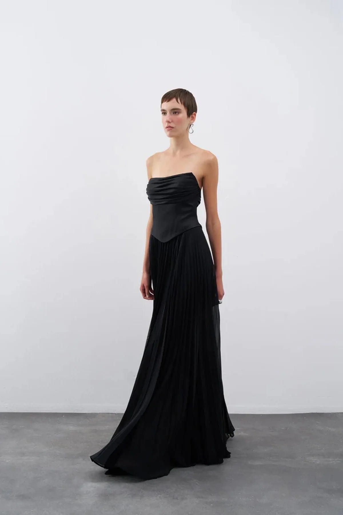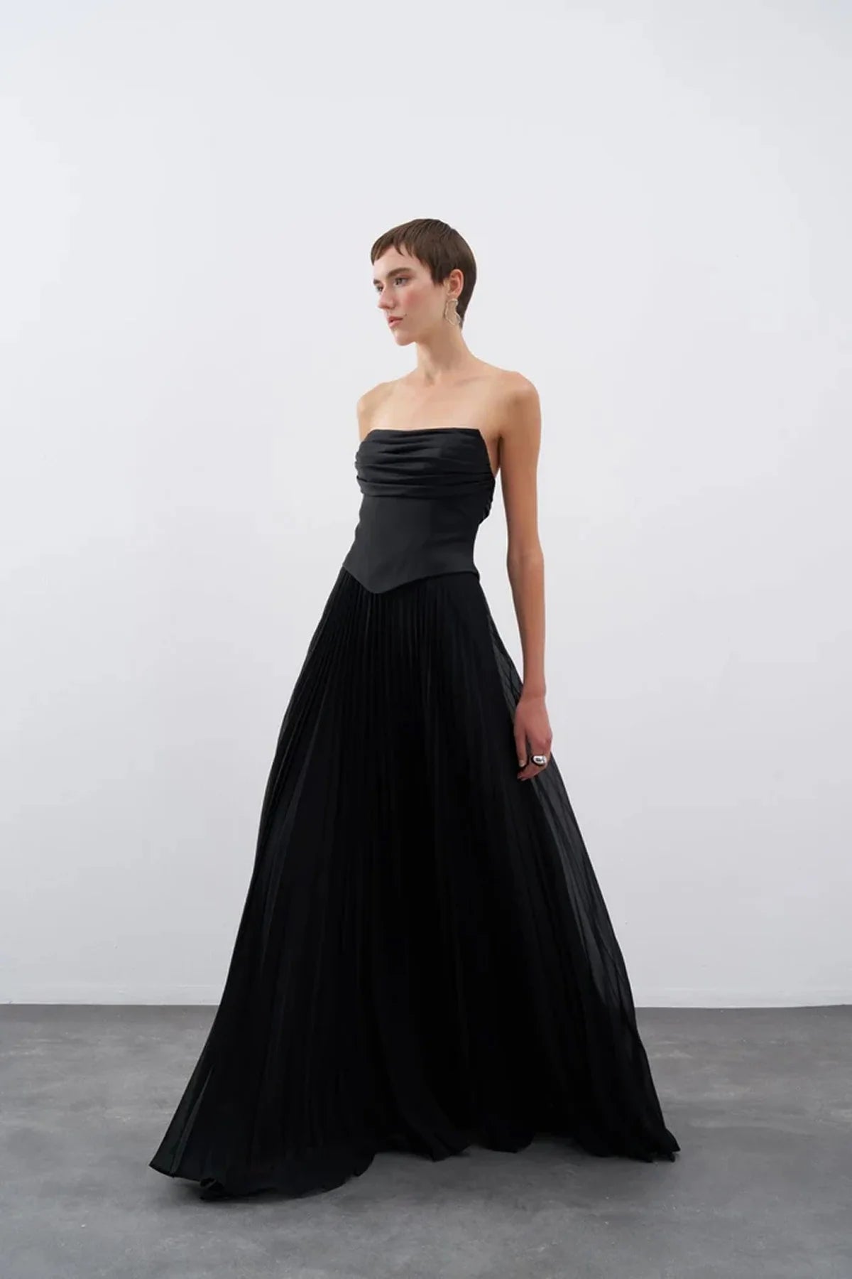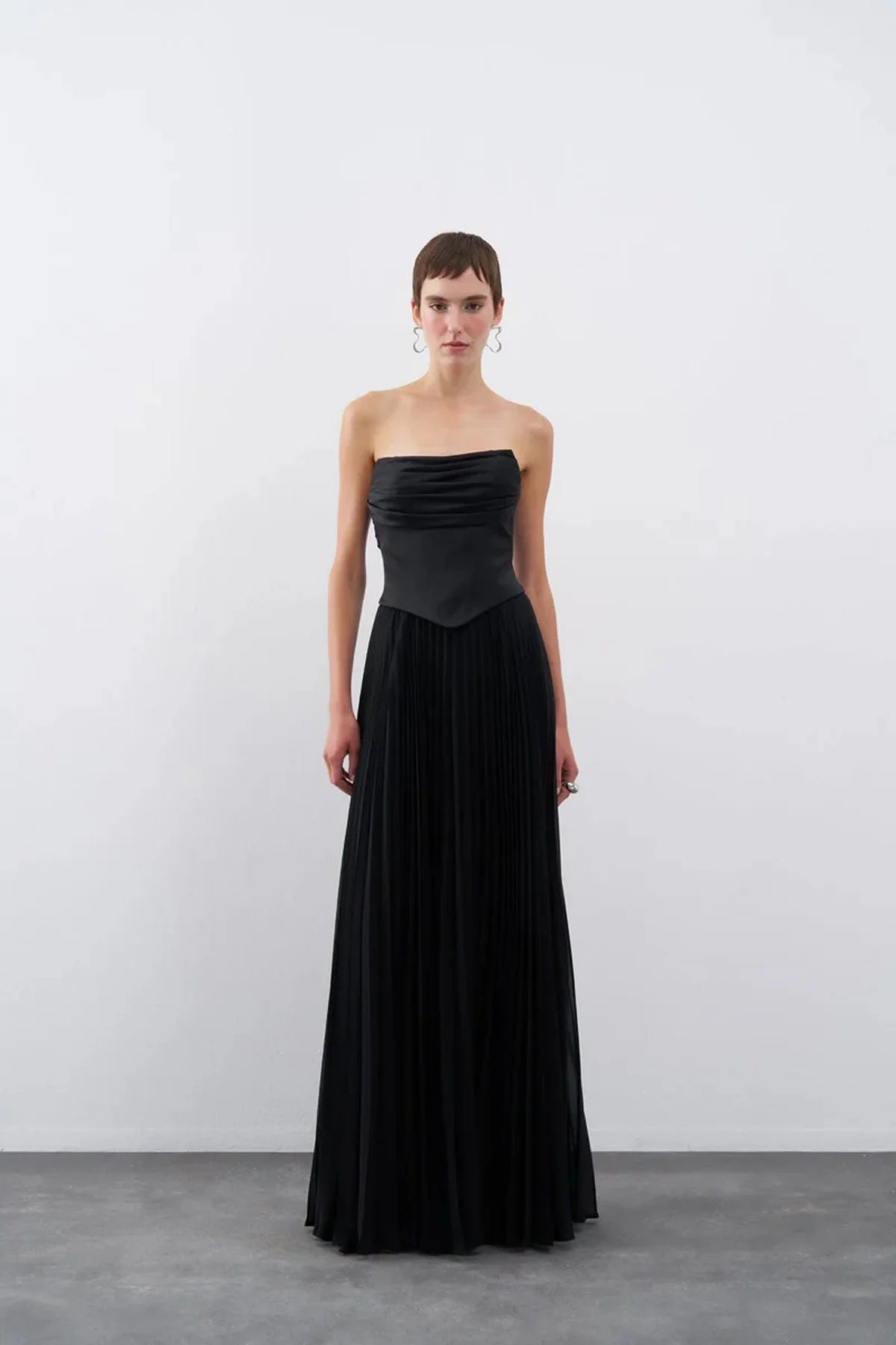 STRAPLEZ DRAPELİ ETEĞİ PİLİSELİ UZUN ABİYE ELBİSE 2101
