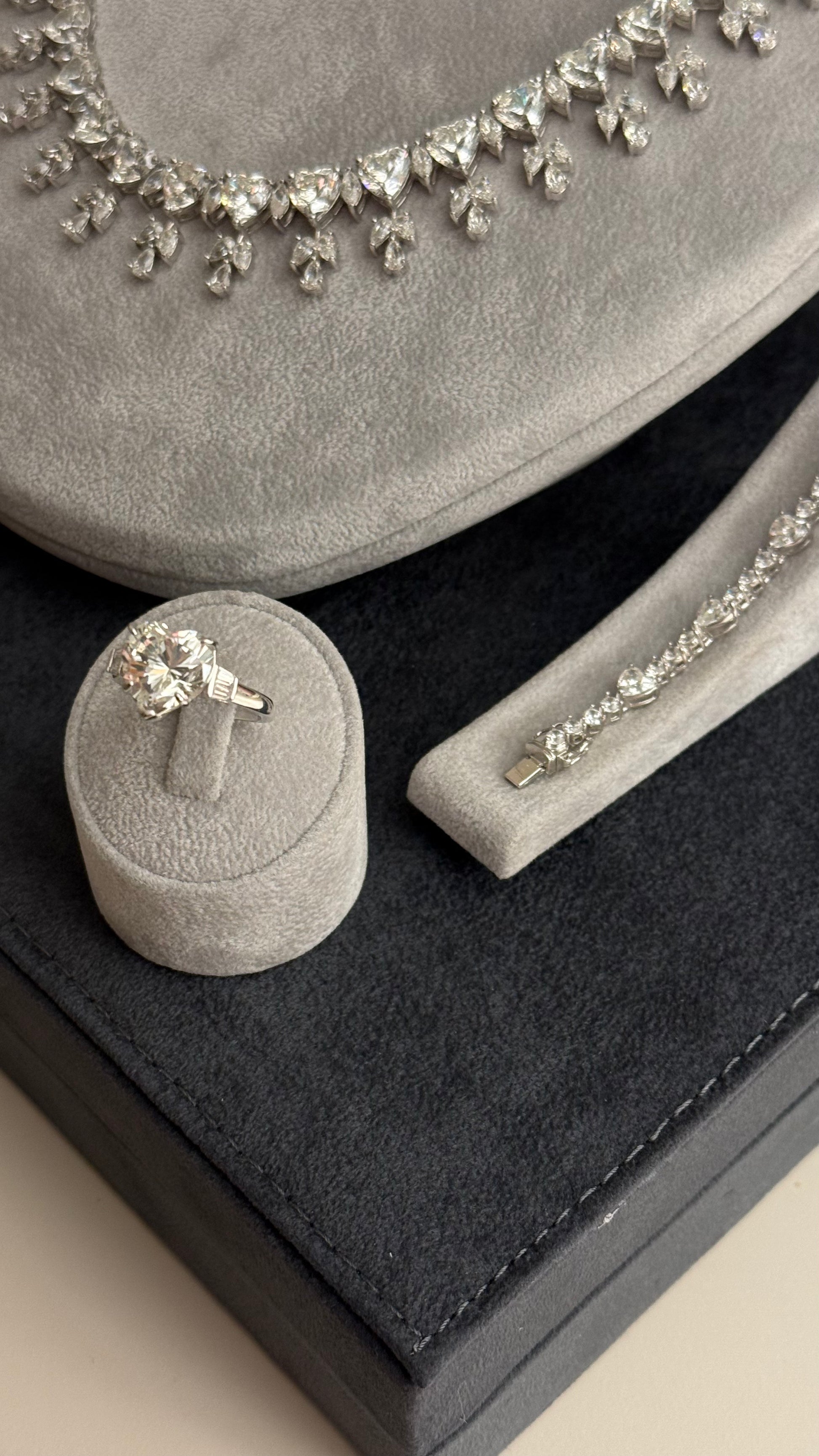 طقم راقي بحجر الموزنايت اللامع – فضة عيار 925