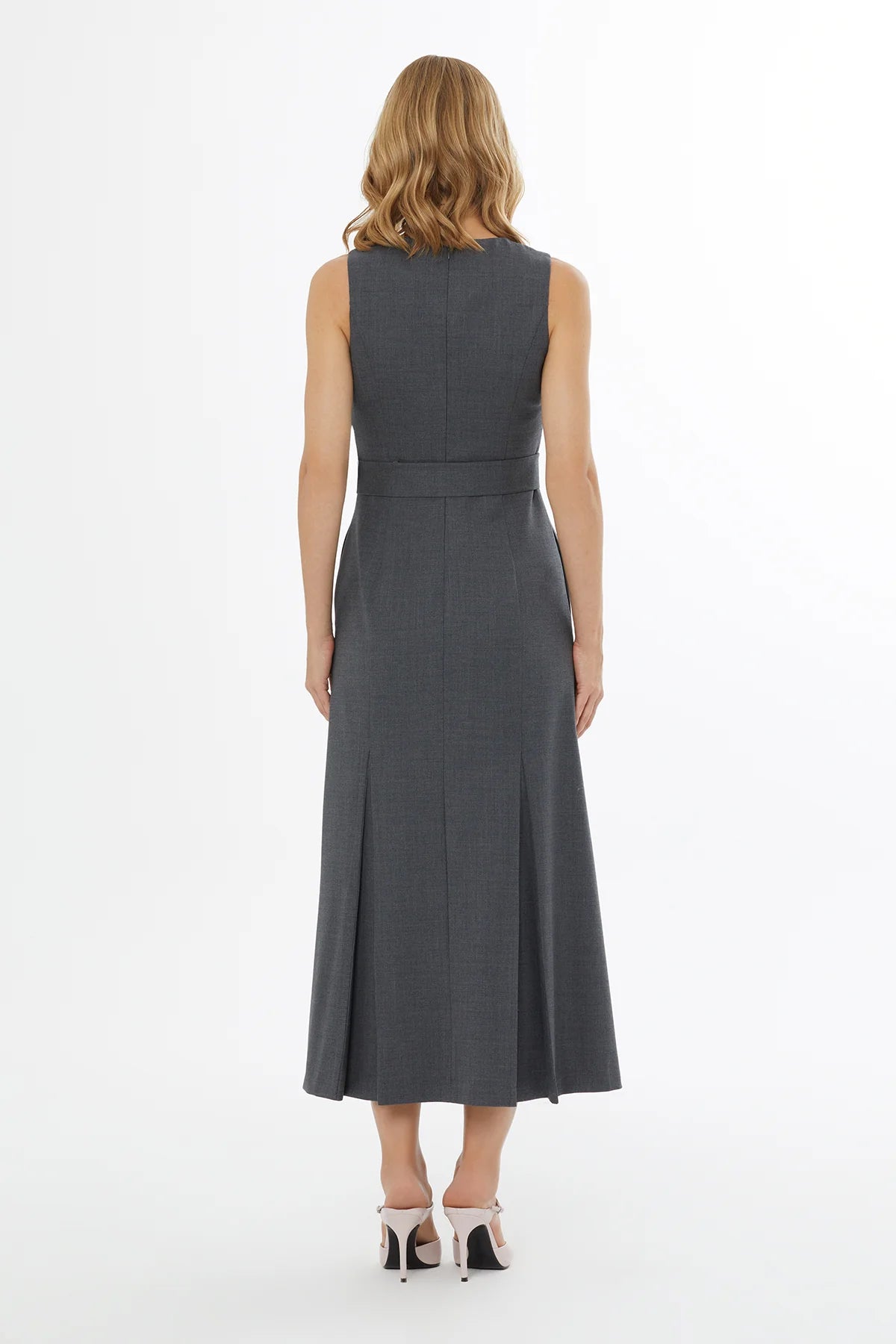 Arkası Gizli Fermuarlı Seyyar Kuşaklı Logolu Maxi Elbise