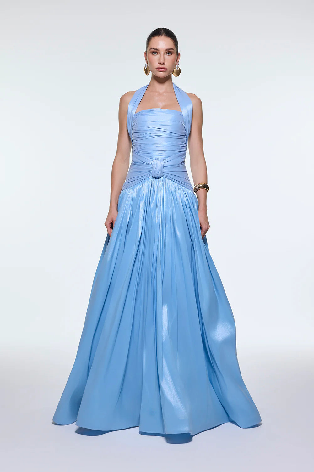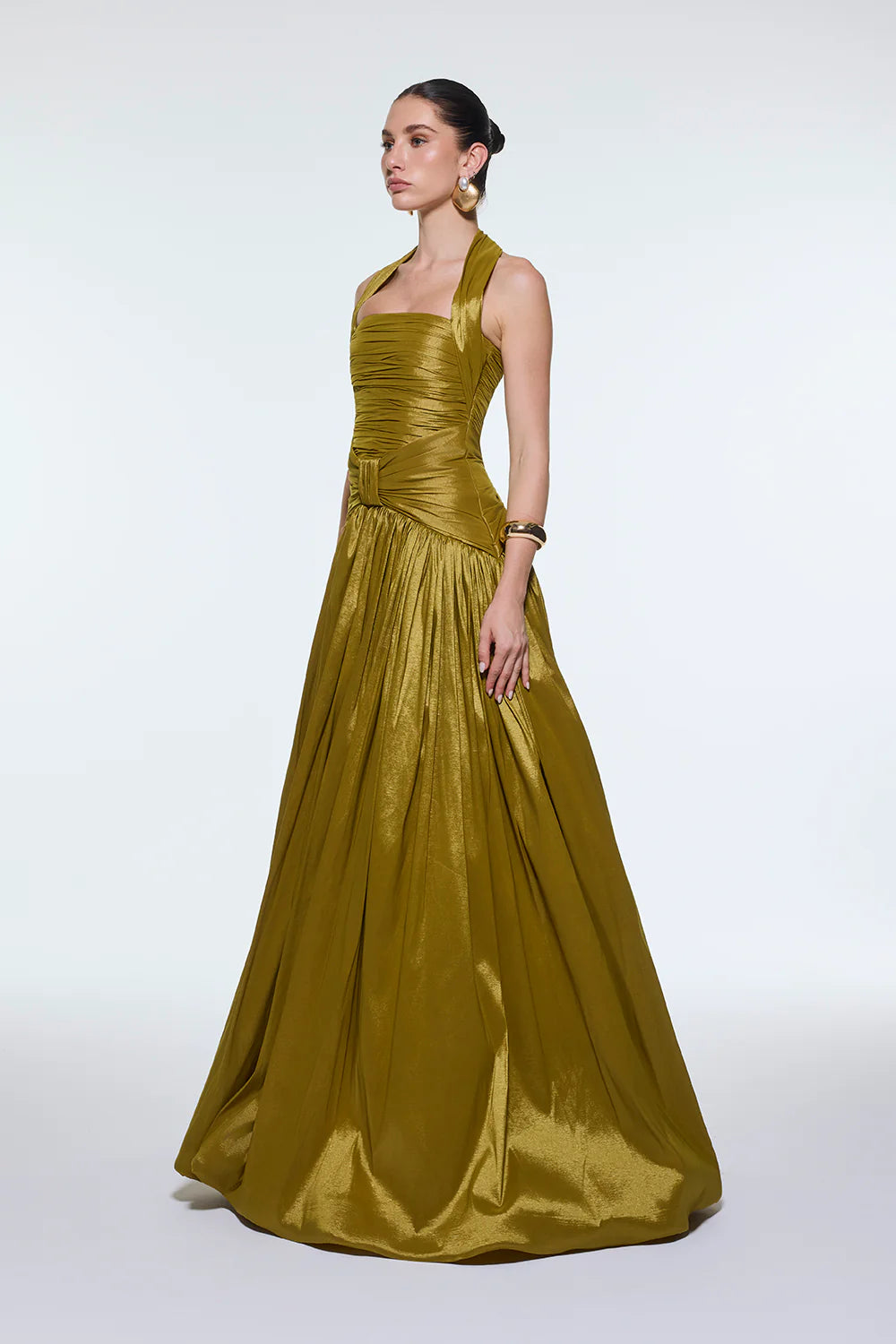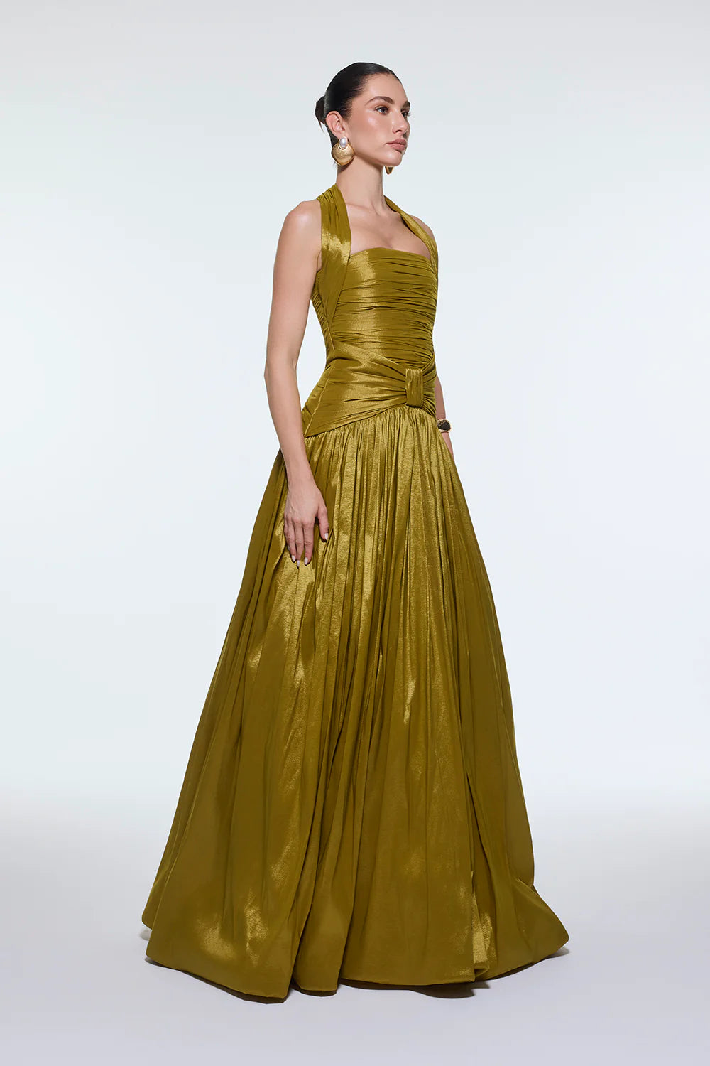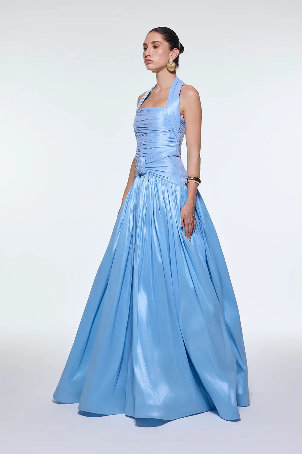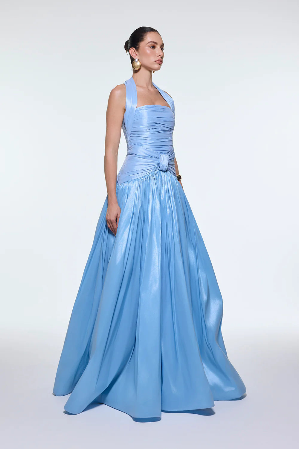 BOYUNDAN ASKILI DRAPELİ TAFTA UZUN ABİYE ELBİSE - 9280C