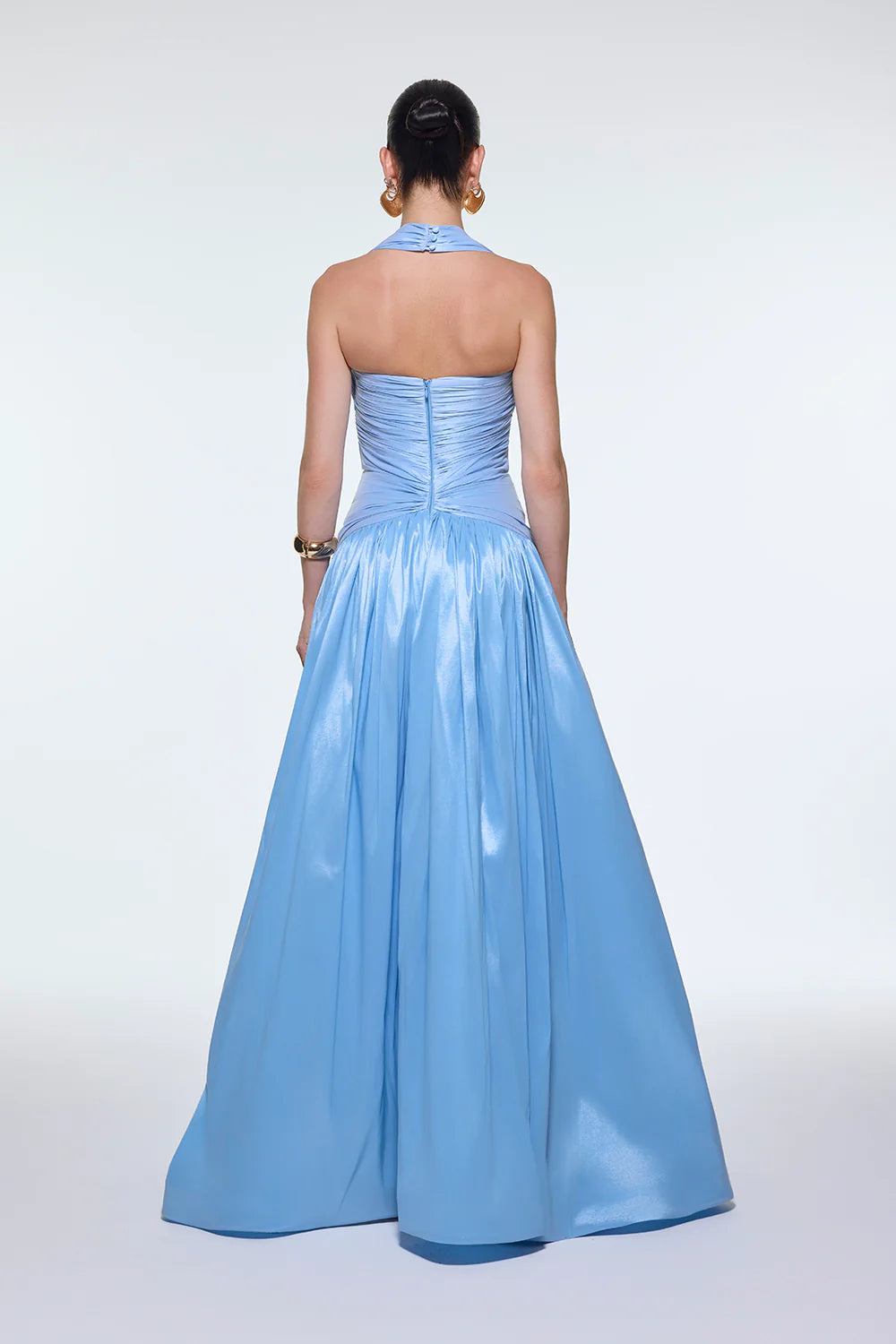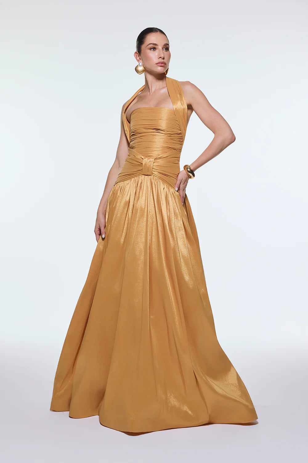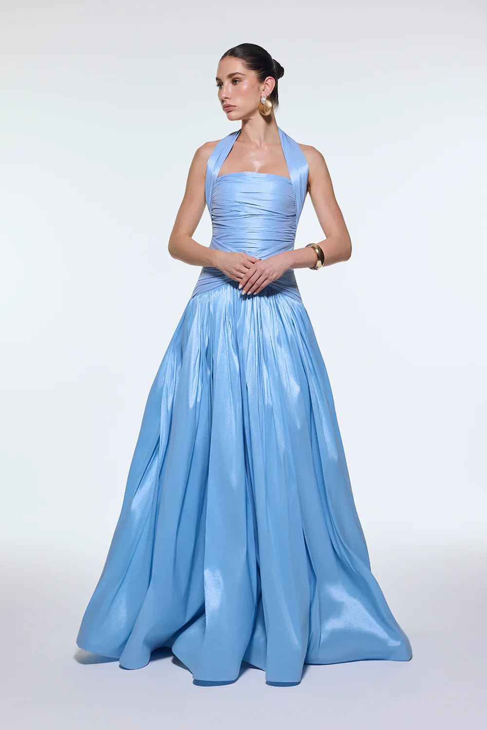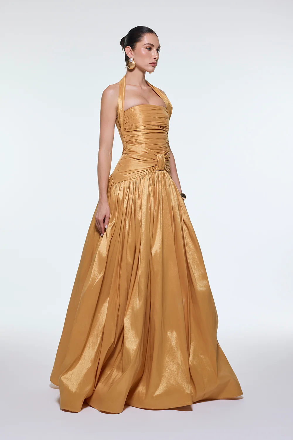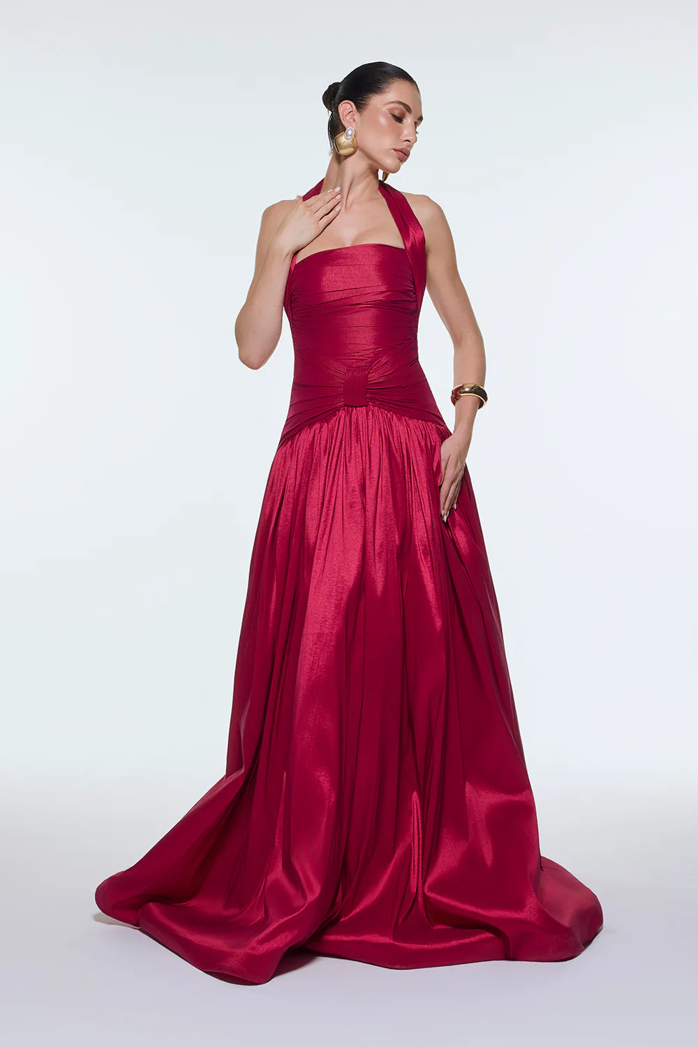 BOYUNDAN ASKILI DRAPELİ TAFTA UZUN ABİYE ELBİSE - 9280C