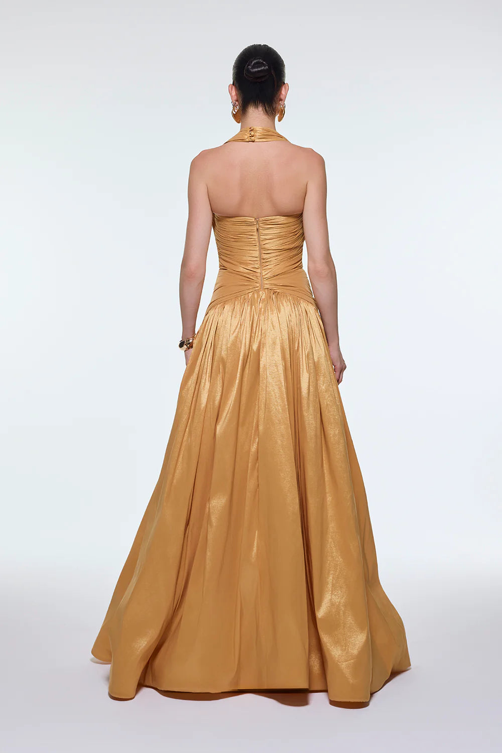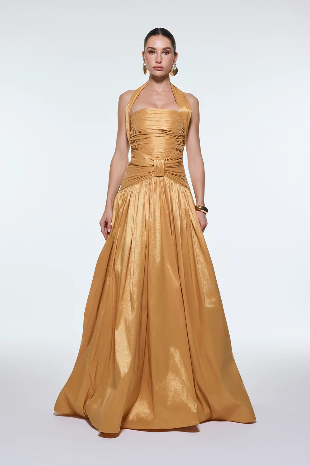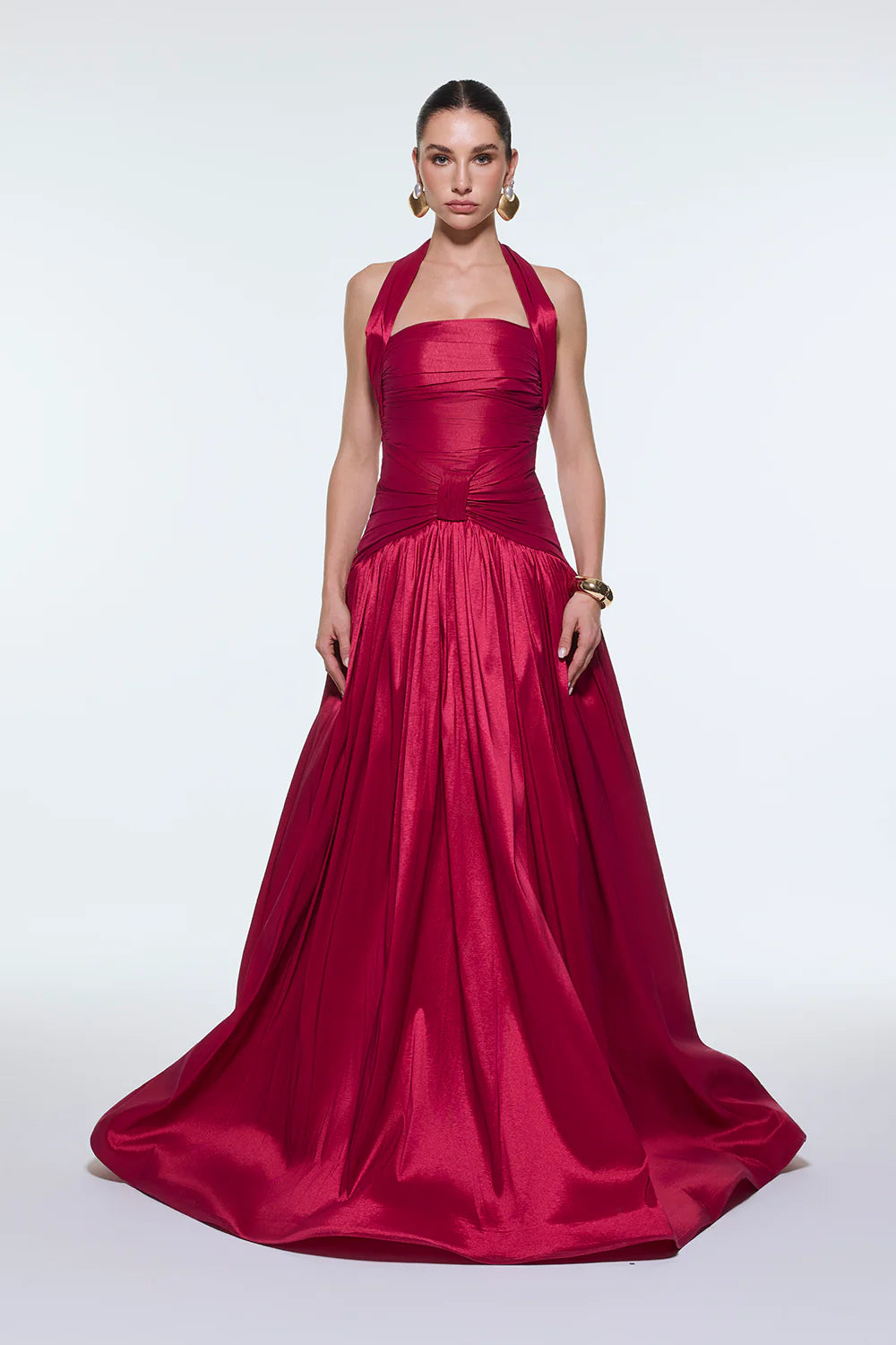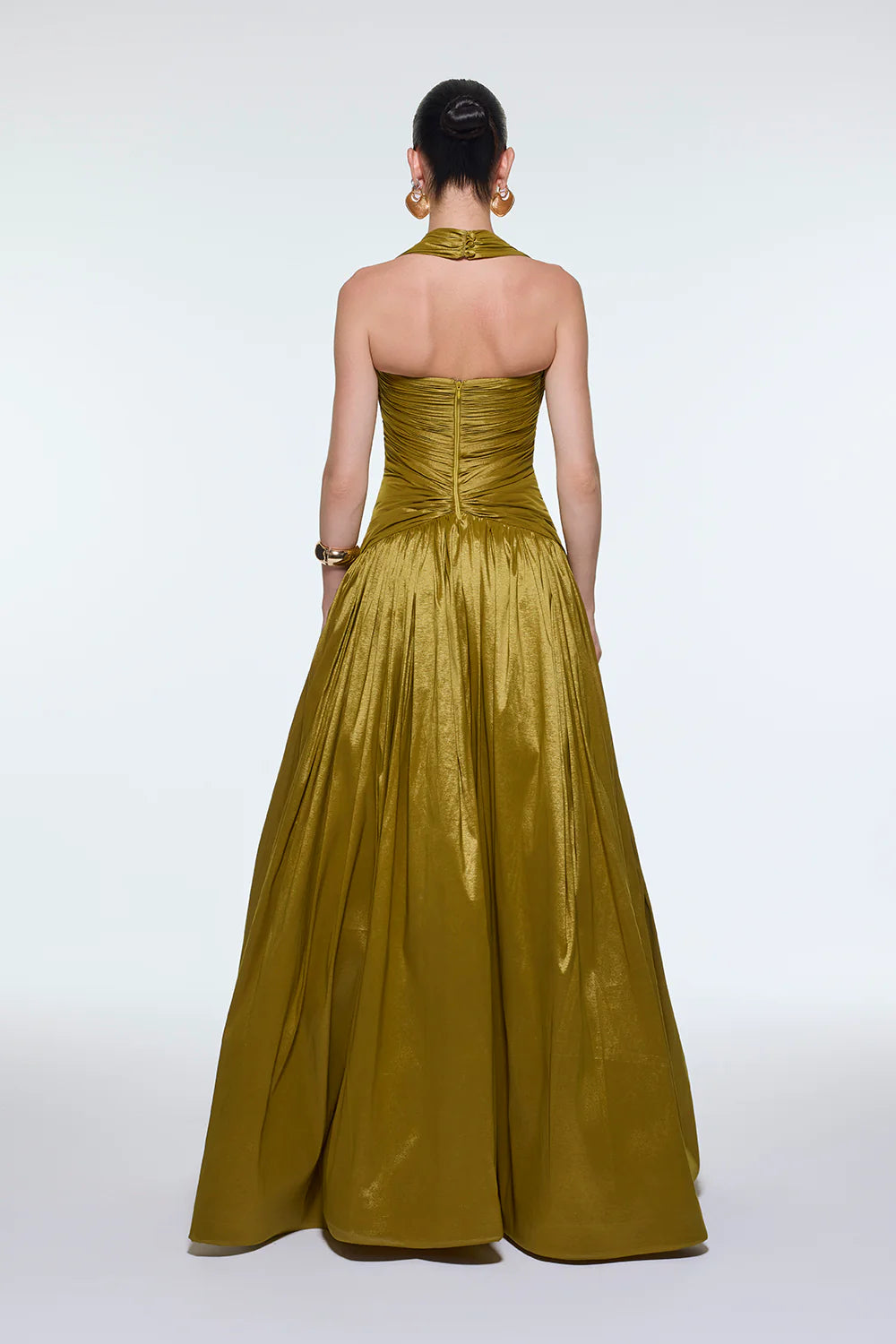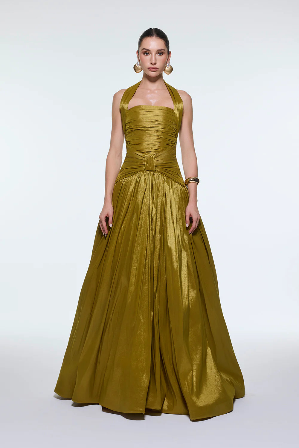 BOYUNDAN ASKILI DRAPELİ TAFTA UZUN ABİYE ELBİSE - 9280C