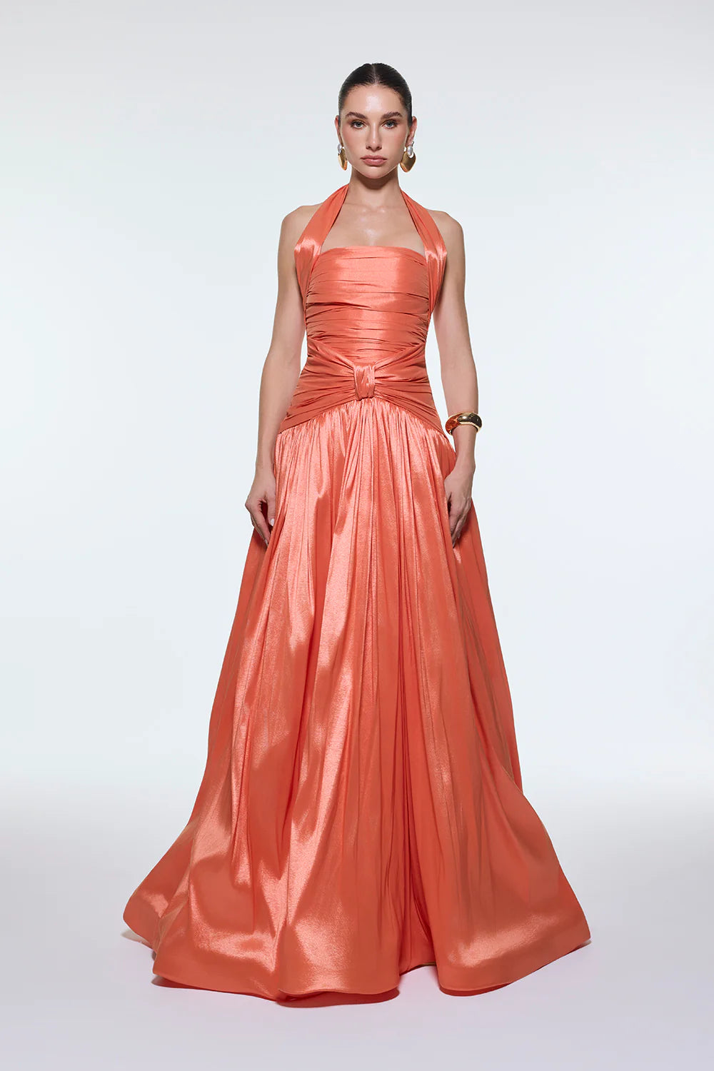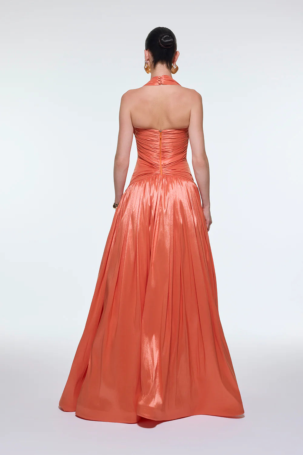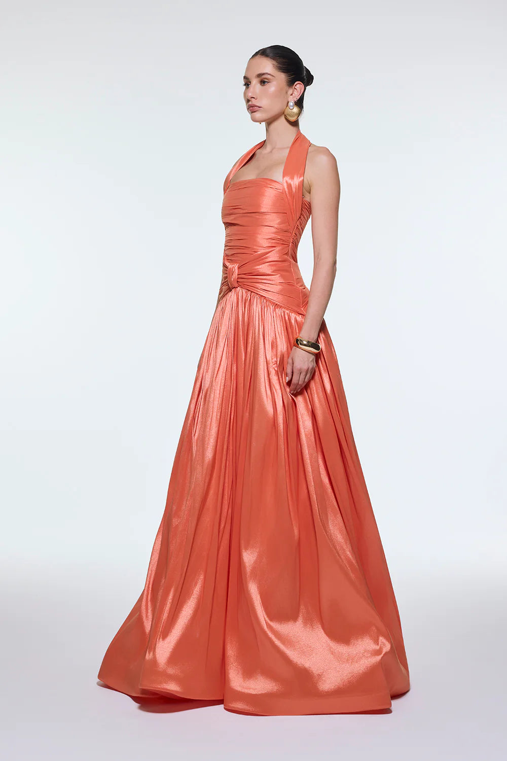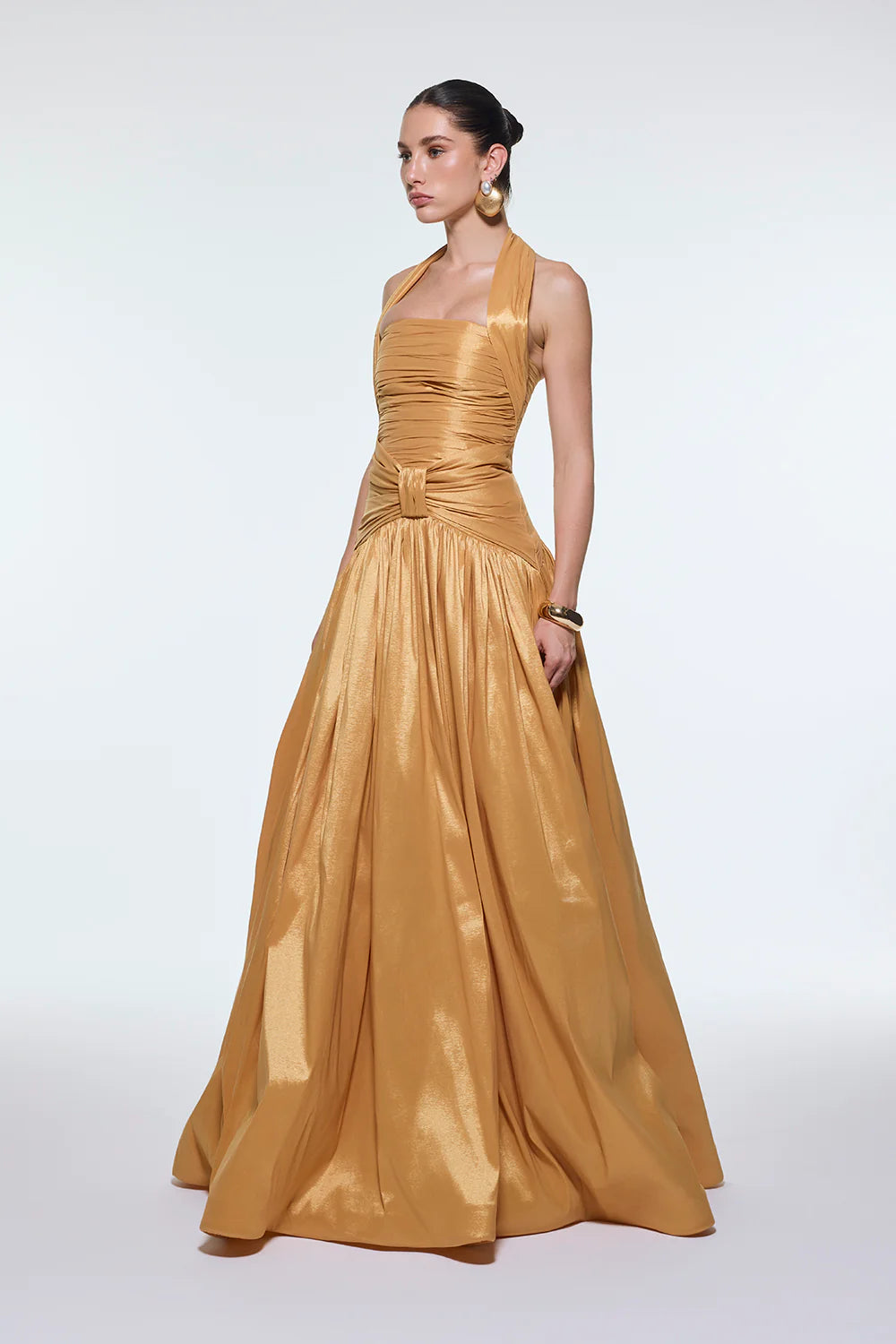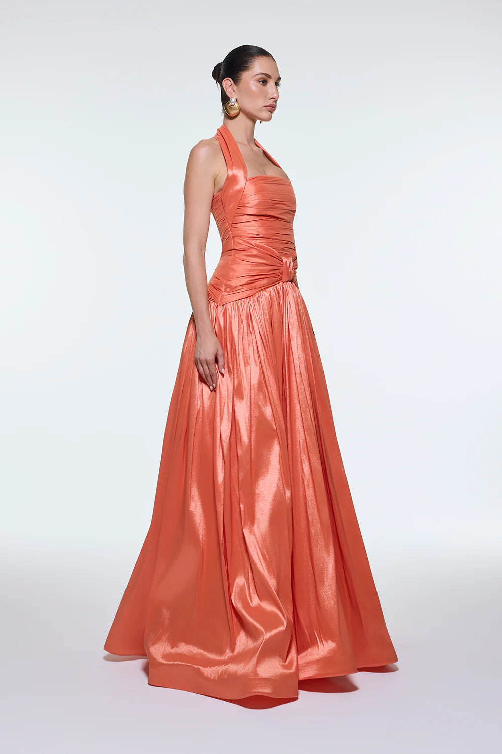 BOYUNDAN ASKILI DRAPELİ TAFTA UZUN ABİYE ELBİSE - 9280C