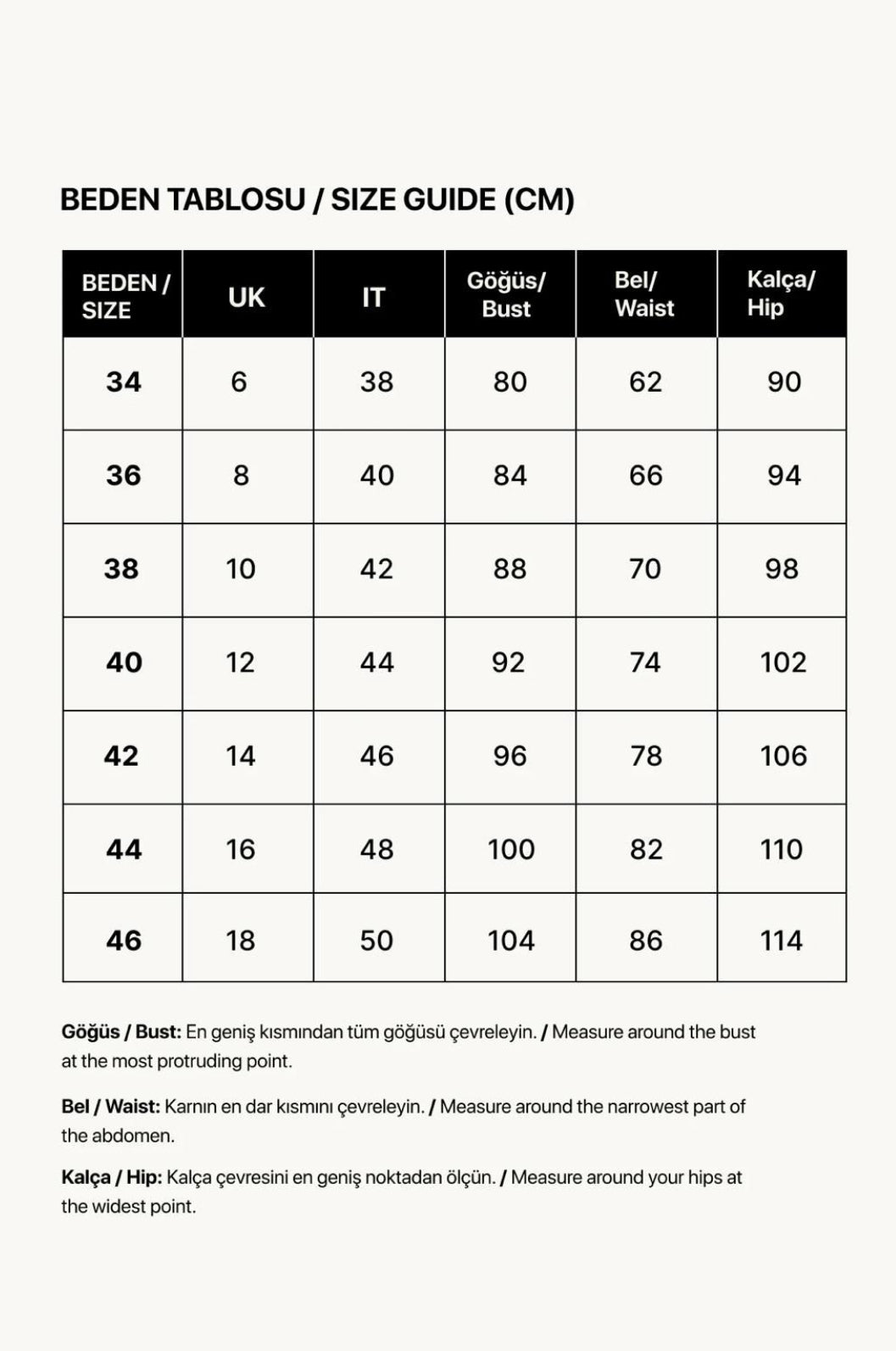Manken ölçüleri: Boy 172 / Göğüs 80 / Bel 60 / Basen 90