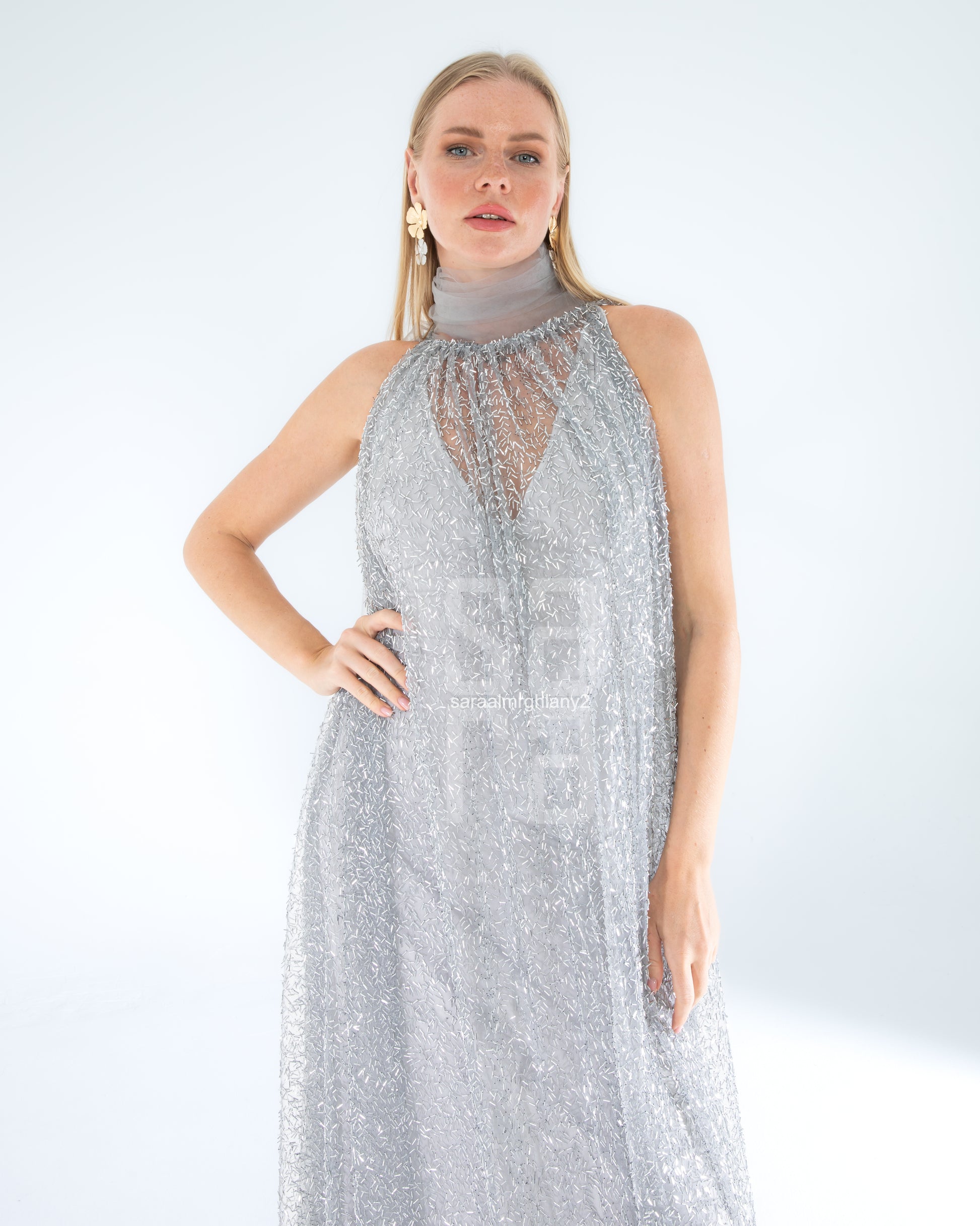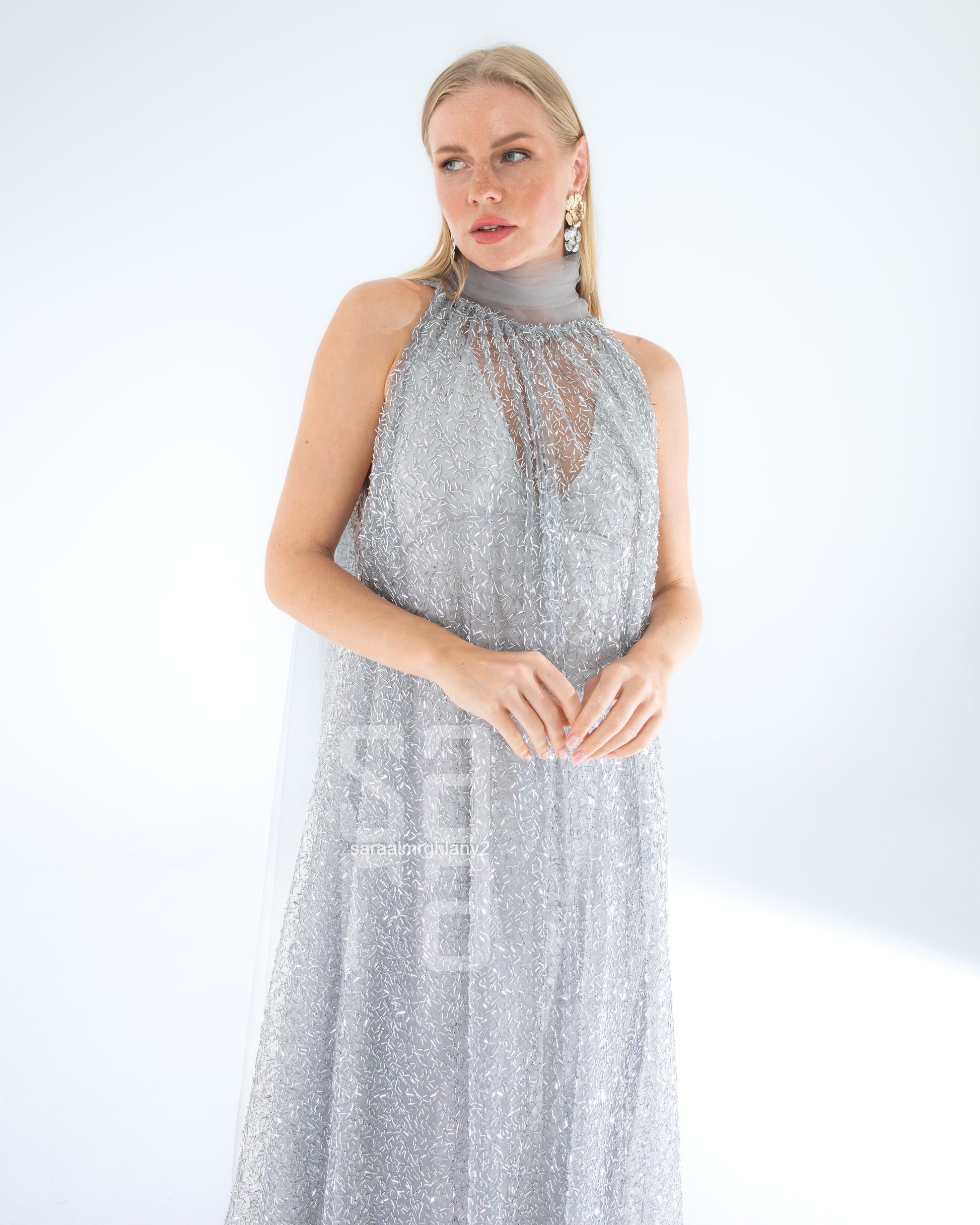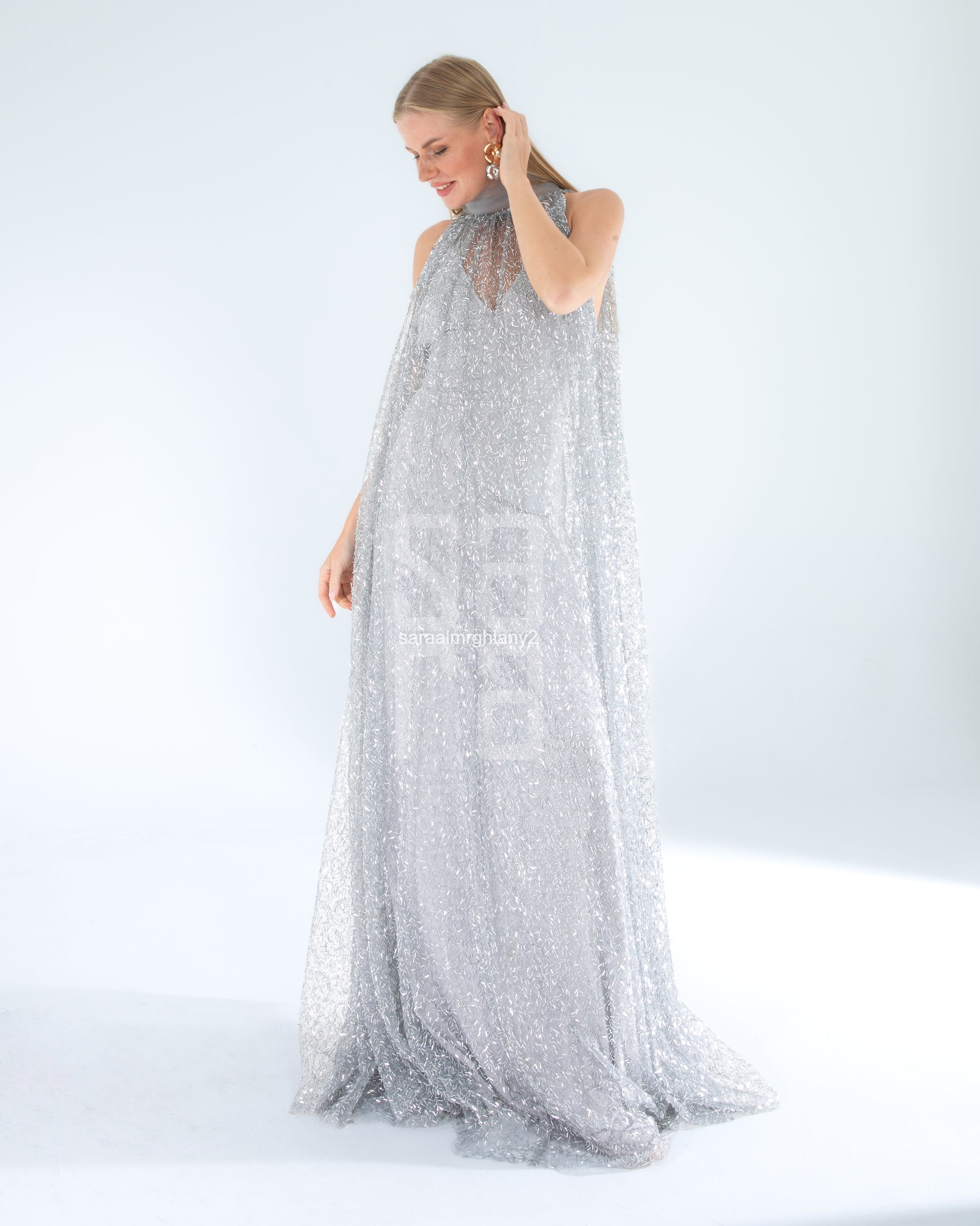 Payetli Kolsuz Uzun Abiye Elbise