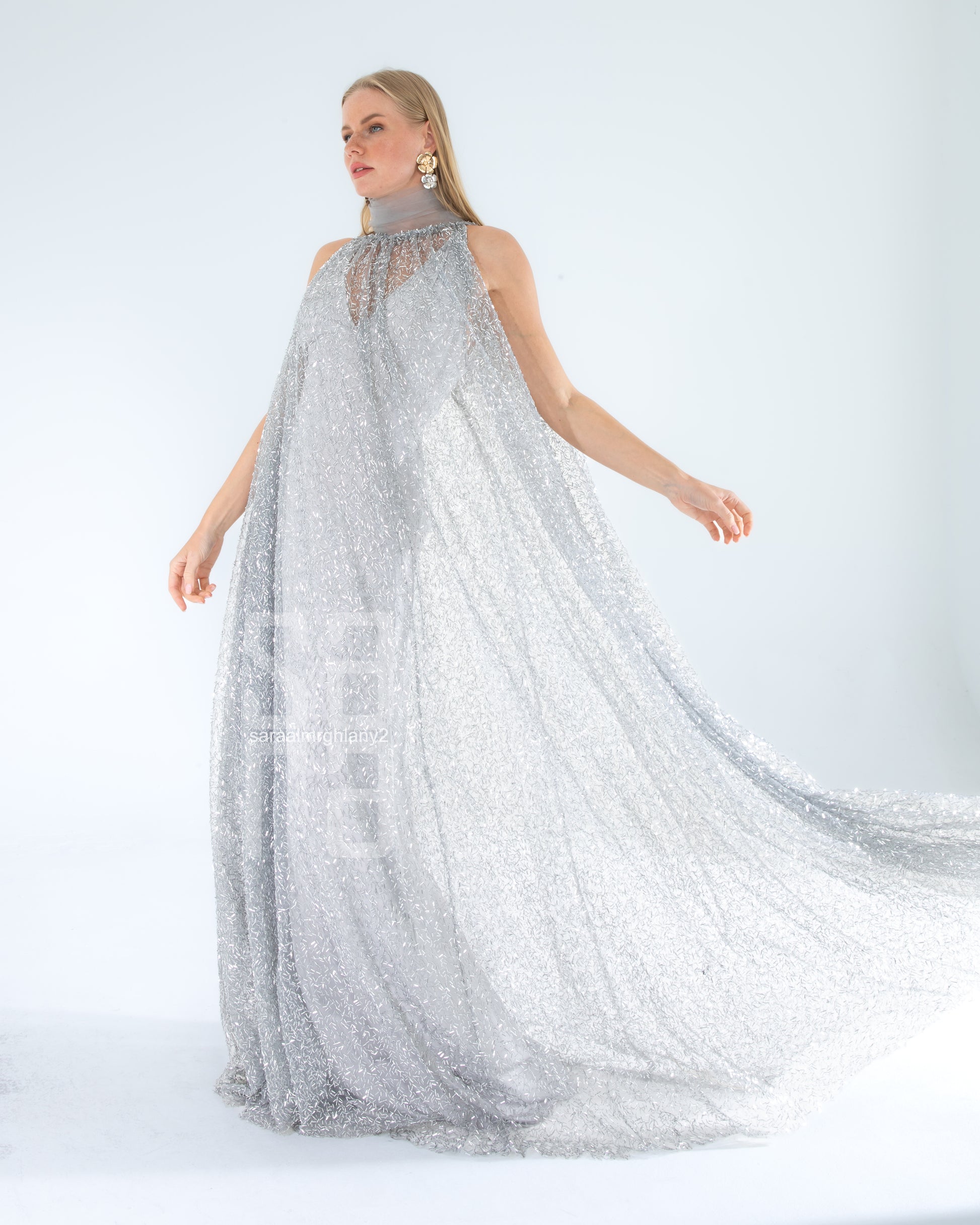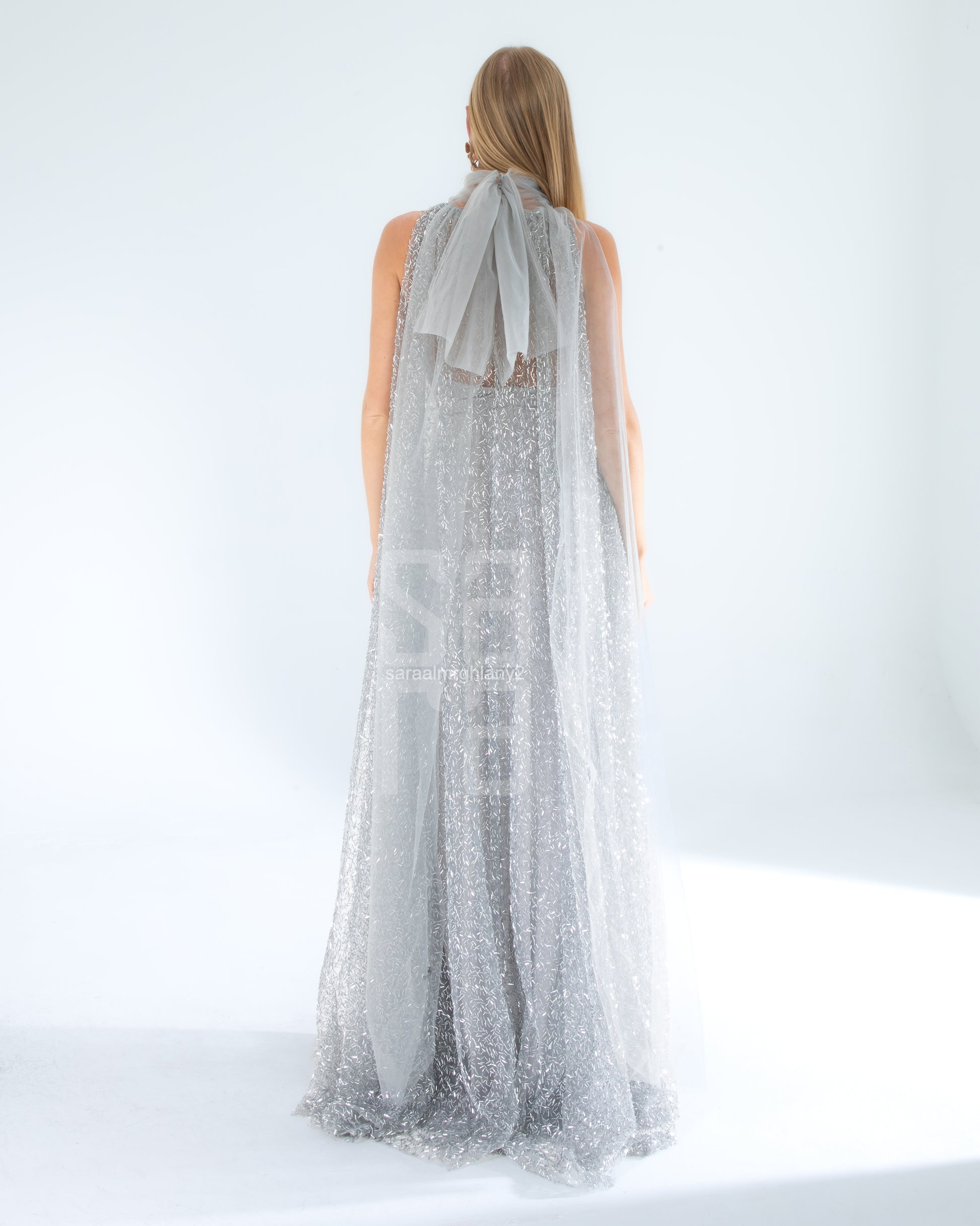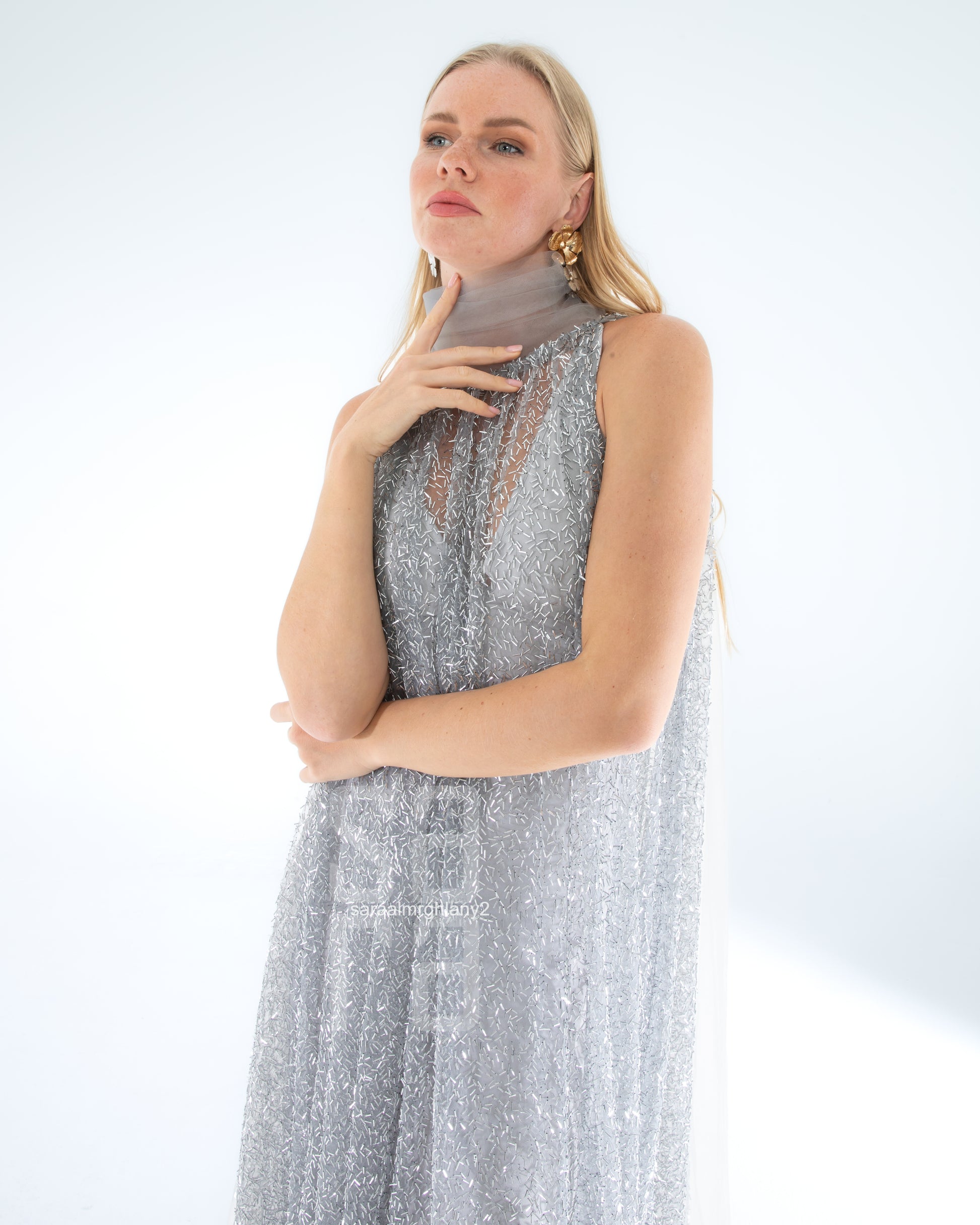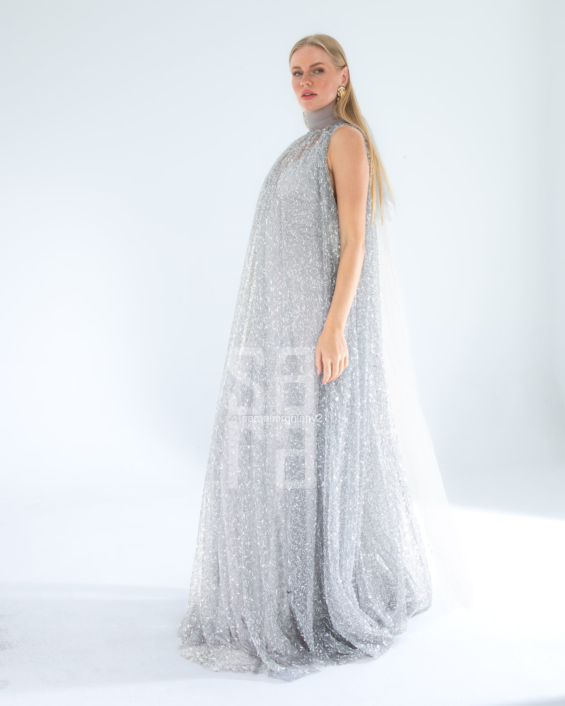 Payetli Kolsuz Uzun Abiye Elbise