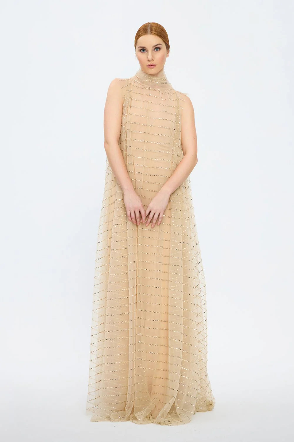 İKİ PARÇA KOLSUZ V YAKA ABİYE ELBİSE - 2004CN