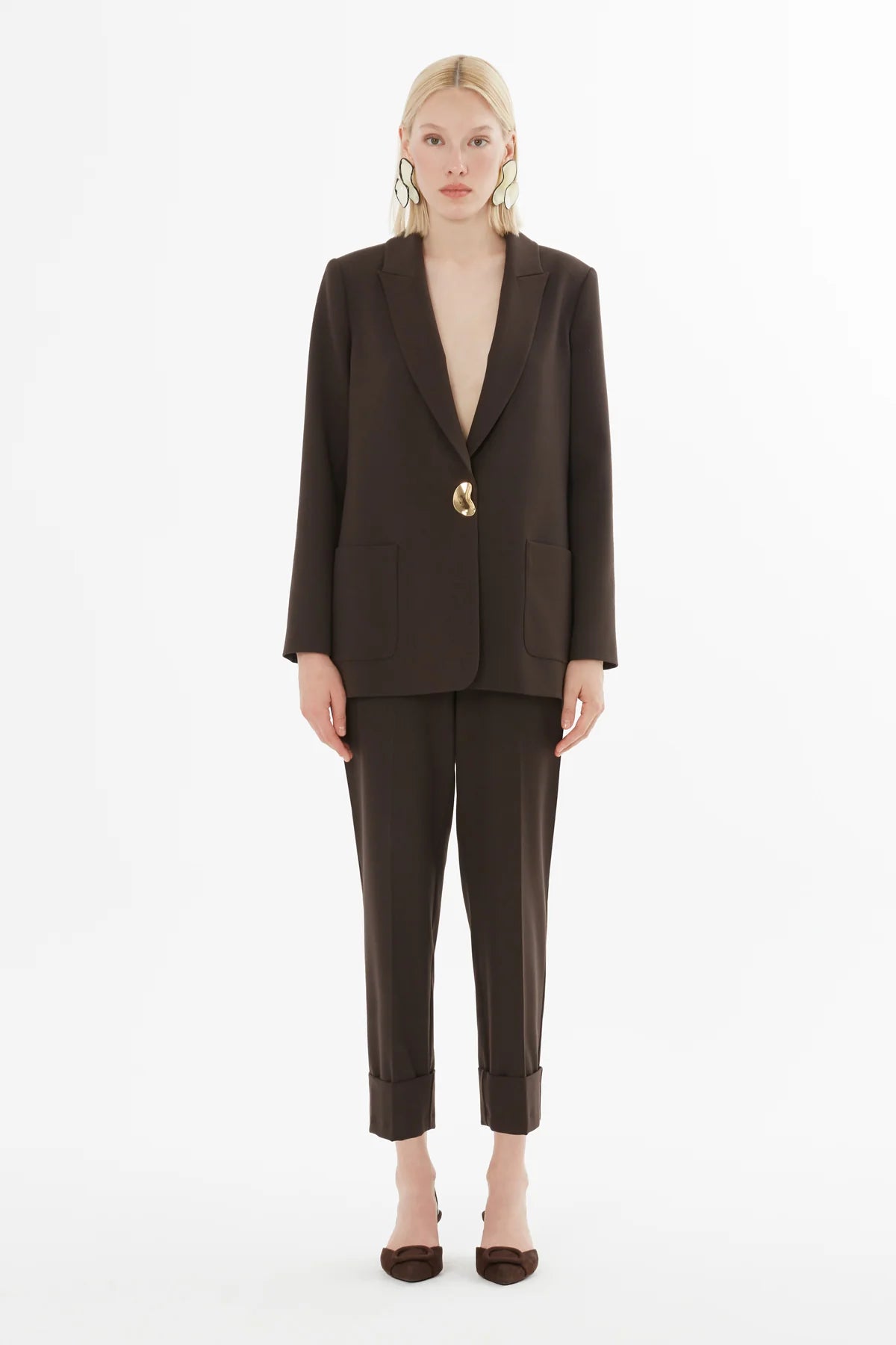 Metal Düğmeli Duble Paçalı Beli Lastikli Pantolonlu Takım