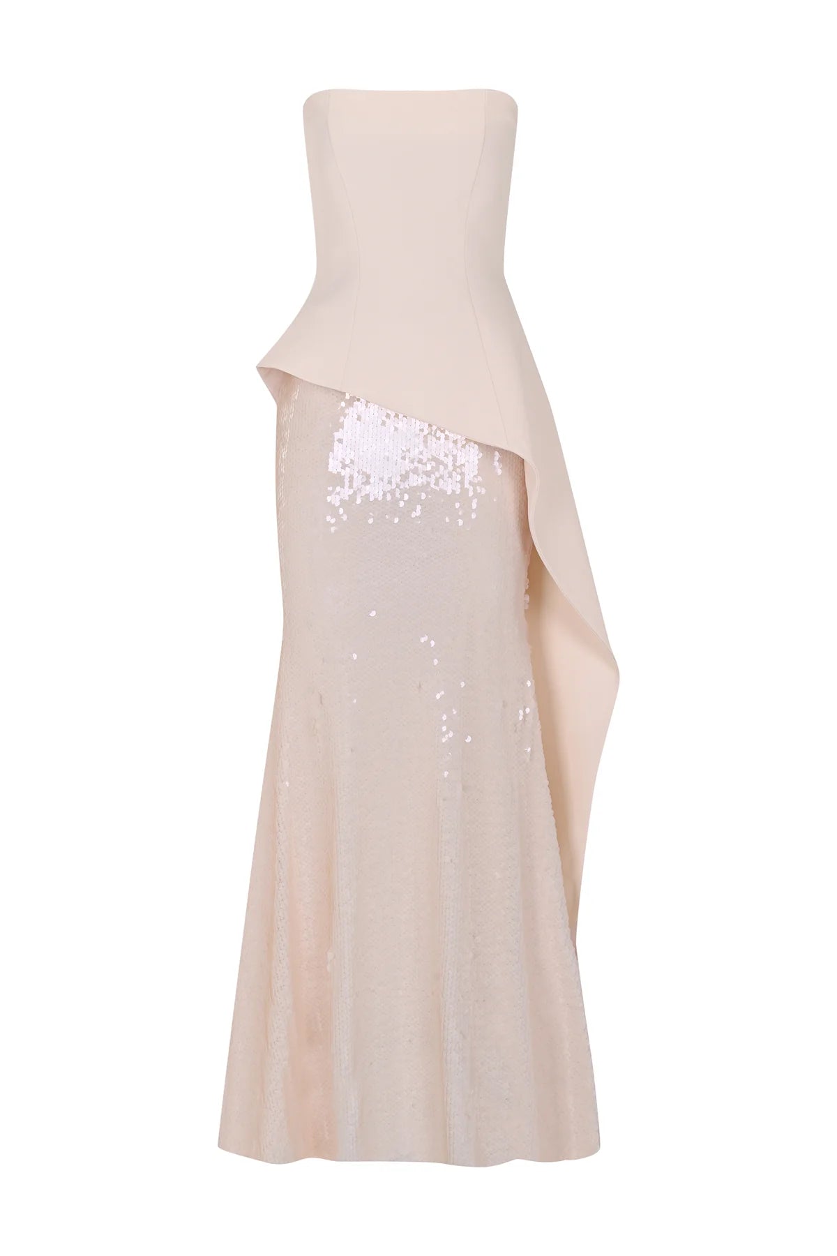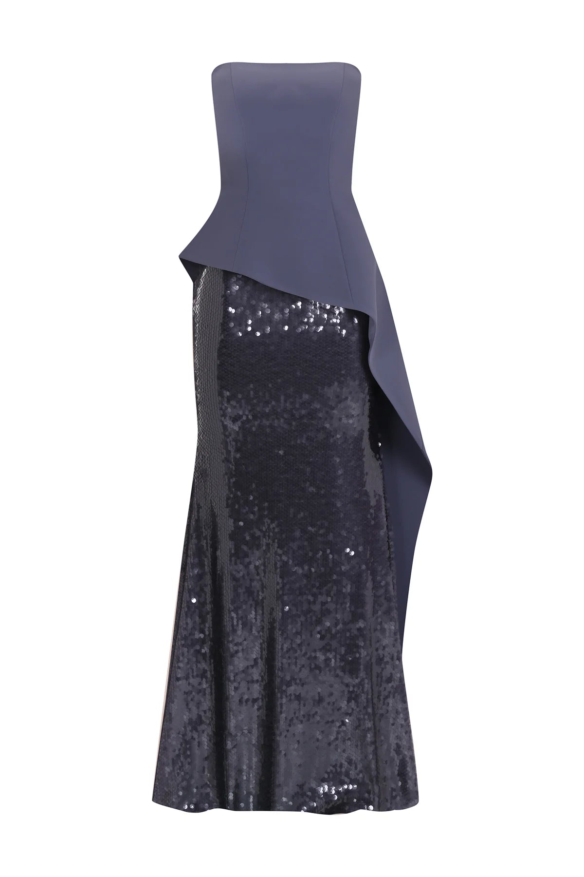 PUL PAYET İŞLEMELİ STRAPLEZ KREP ABİYE ELBİSE 2221