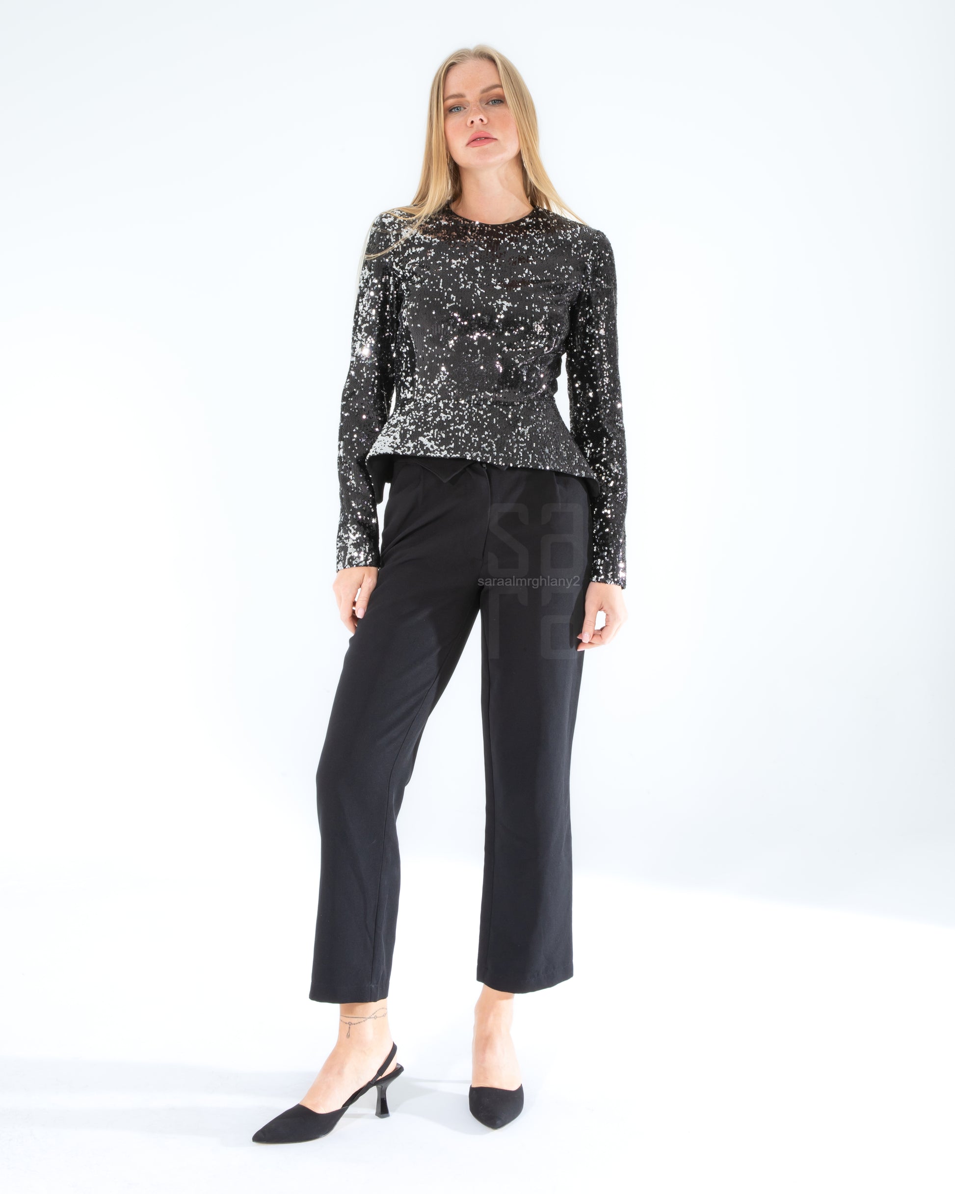 siyah payetli bluz