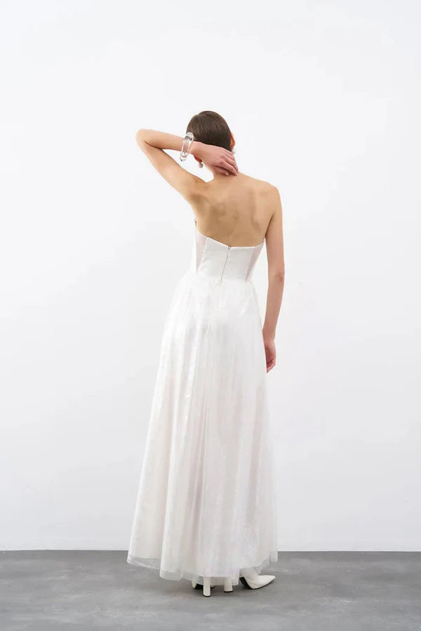 STRAPLEZ KORSAJLI ORGANZE UZUN ABİYE ELBİSE