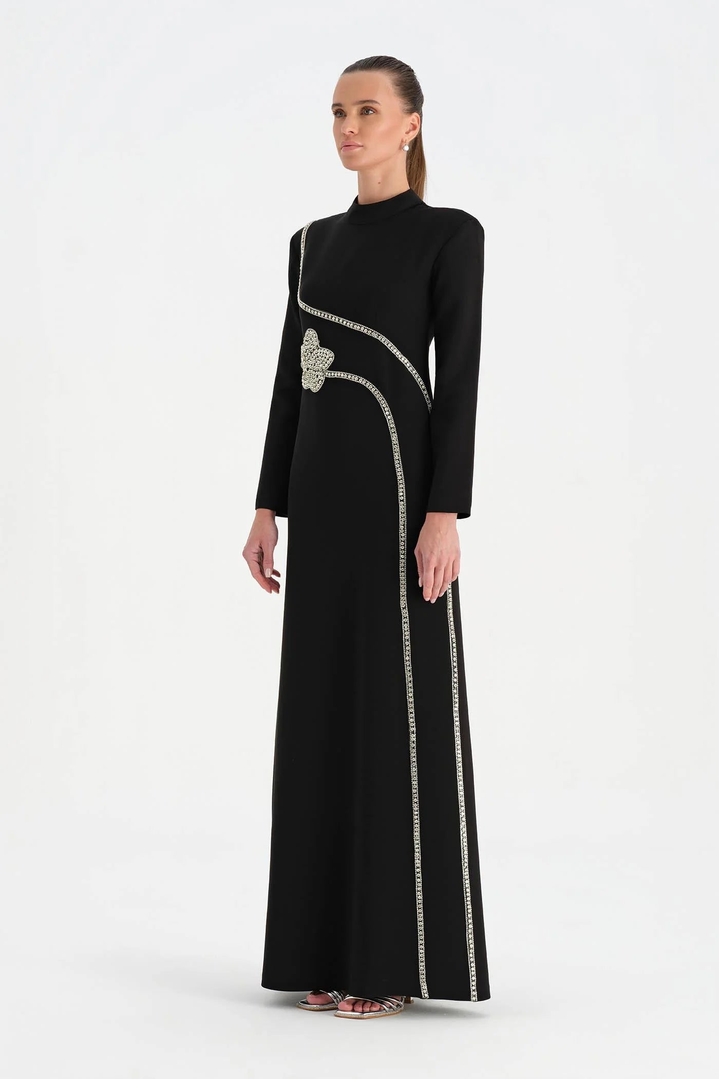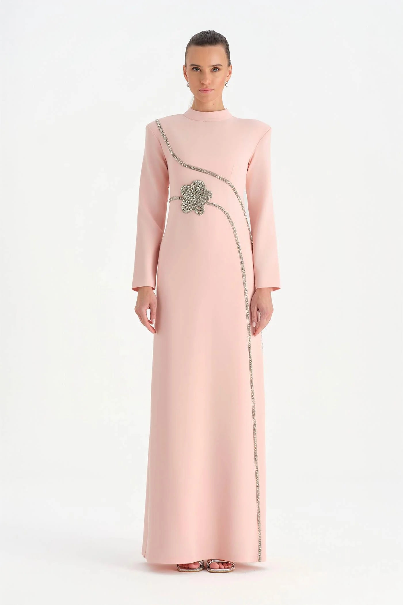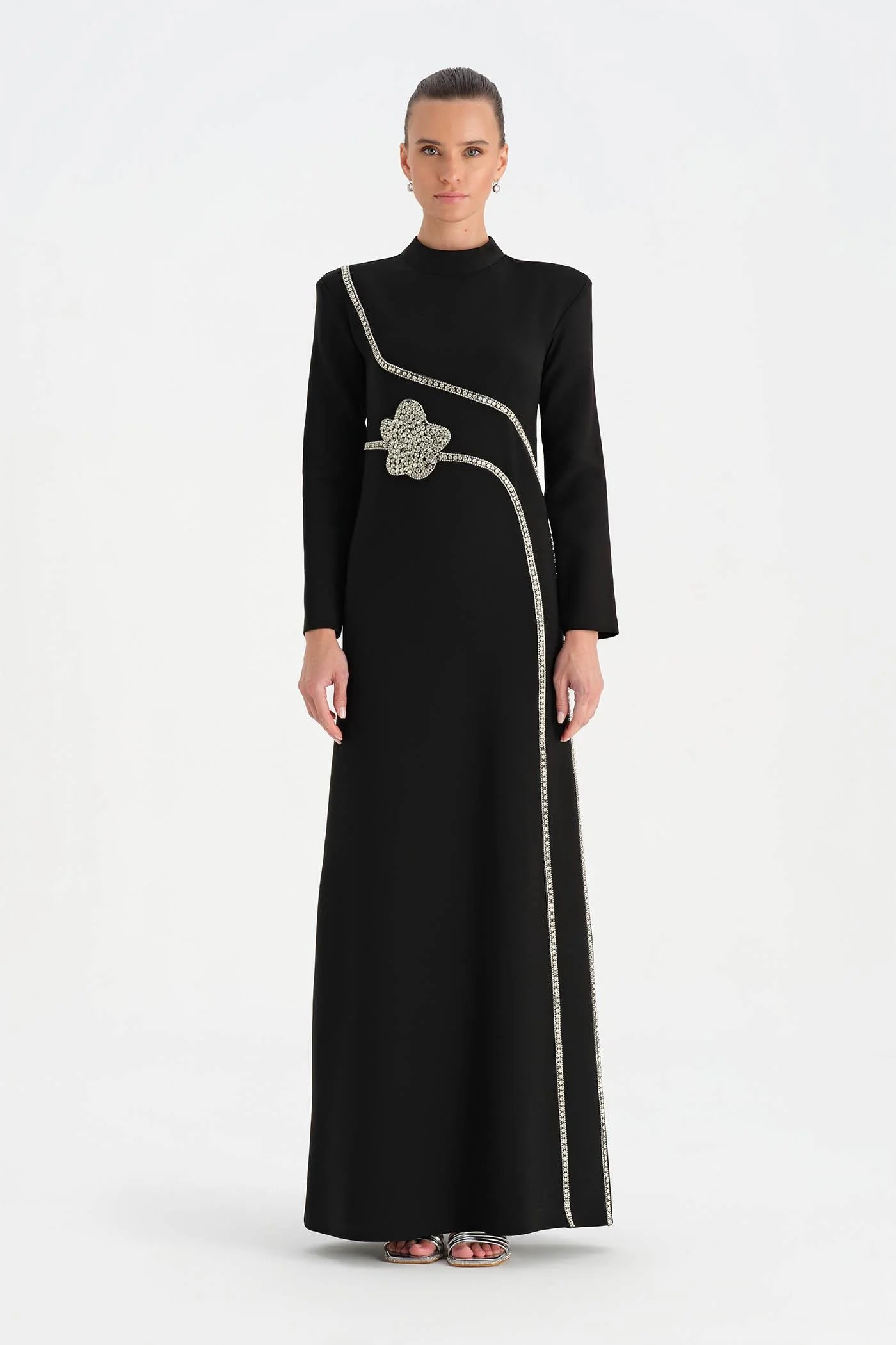 TAŞ İŞLEMELİ TESETTÜR ABİYE ELBİSE - 26186C