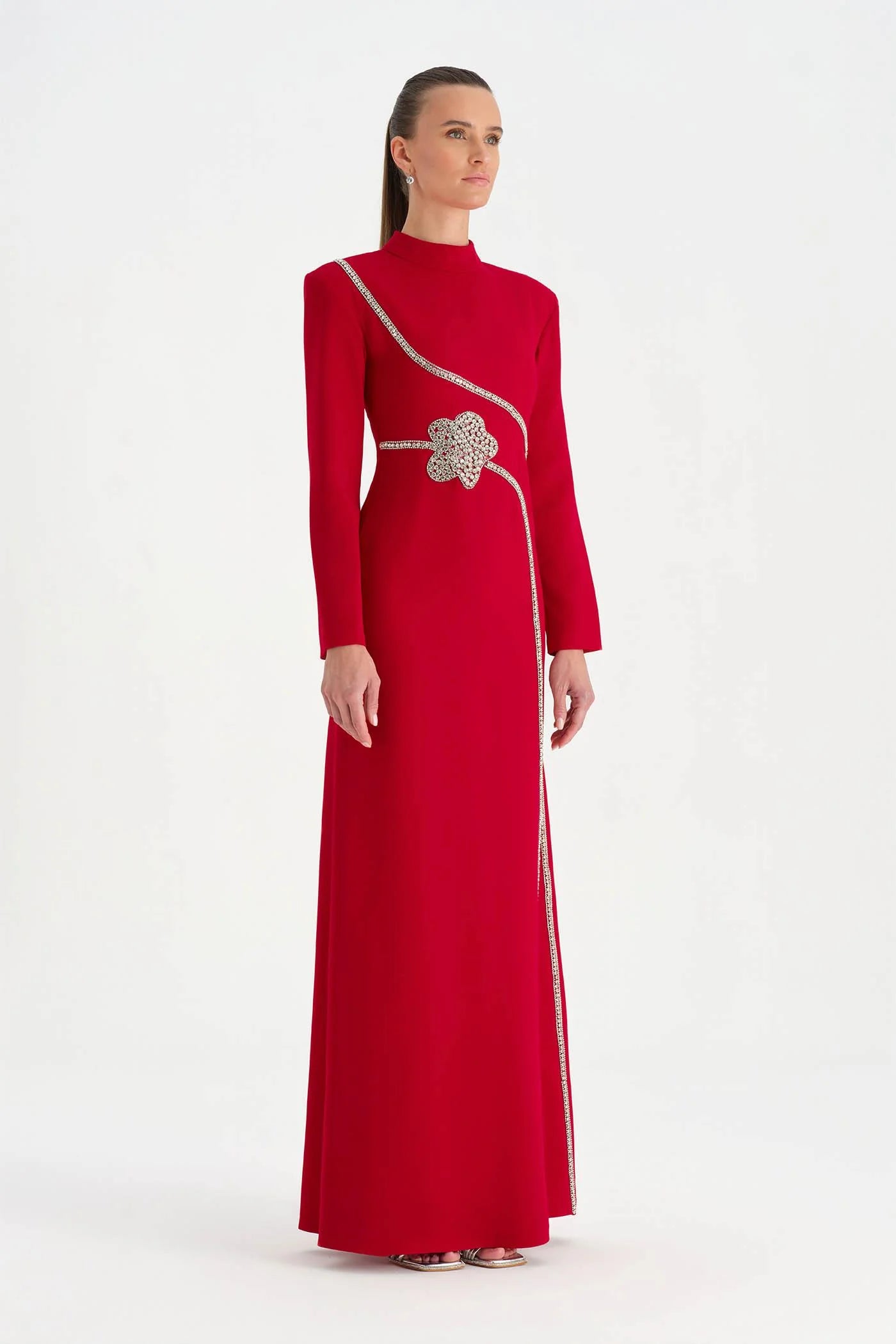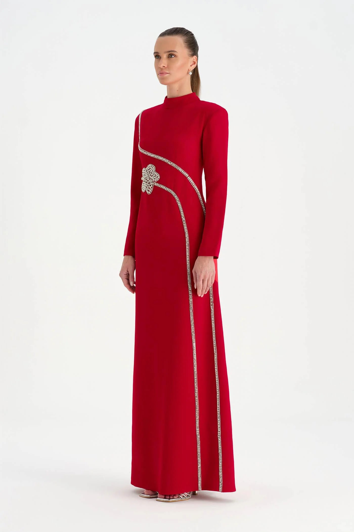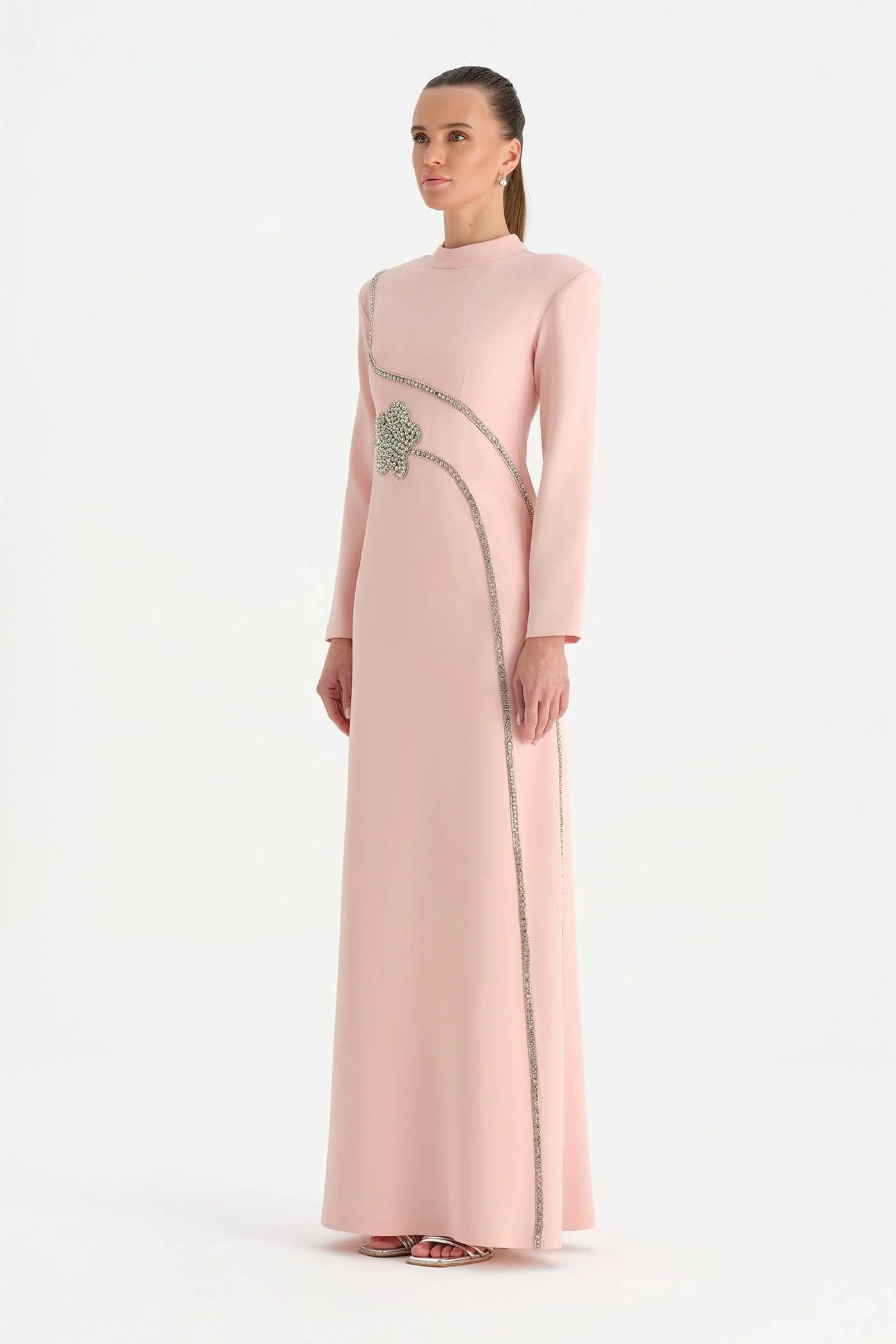 TAŞ İŞLEMELİ TESETTÜR ABİYE ELBİSE - 26186C