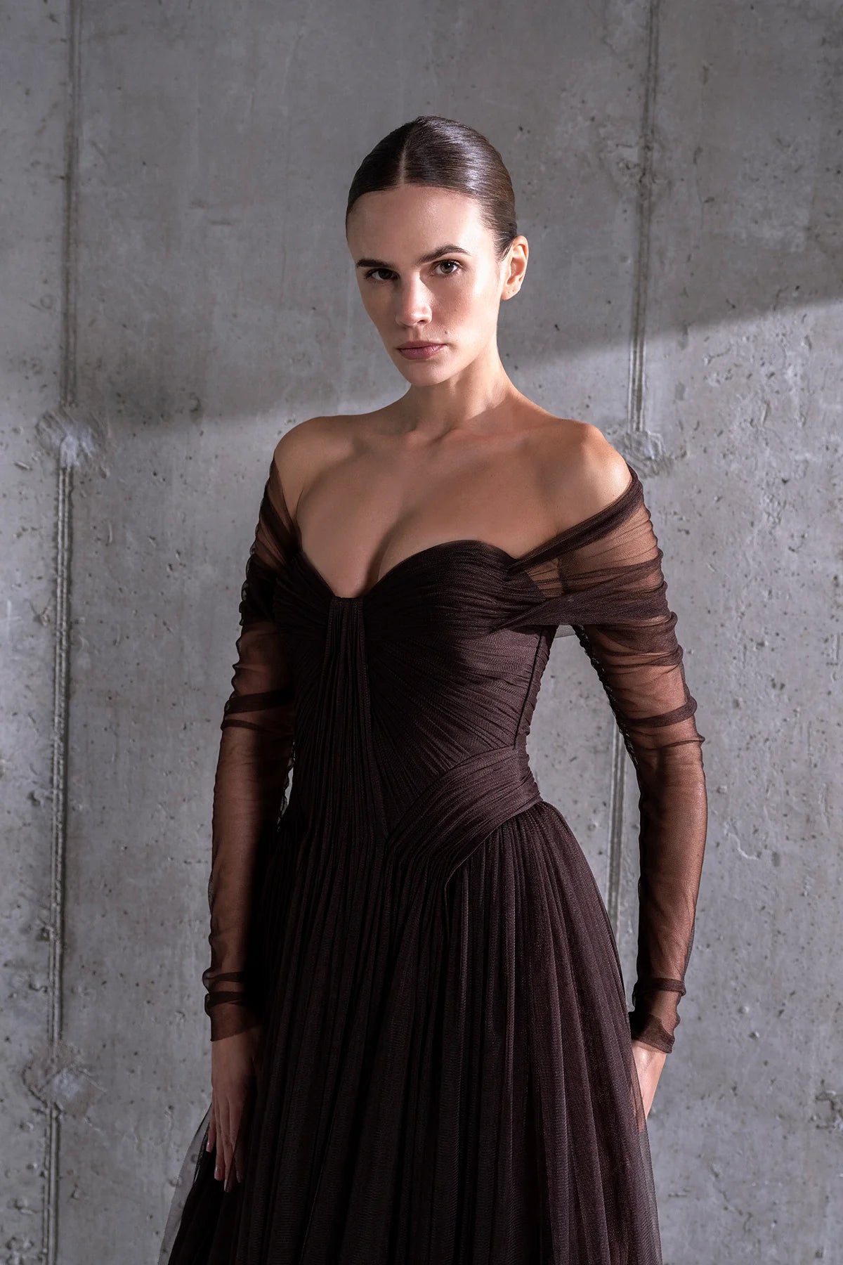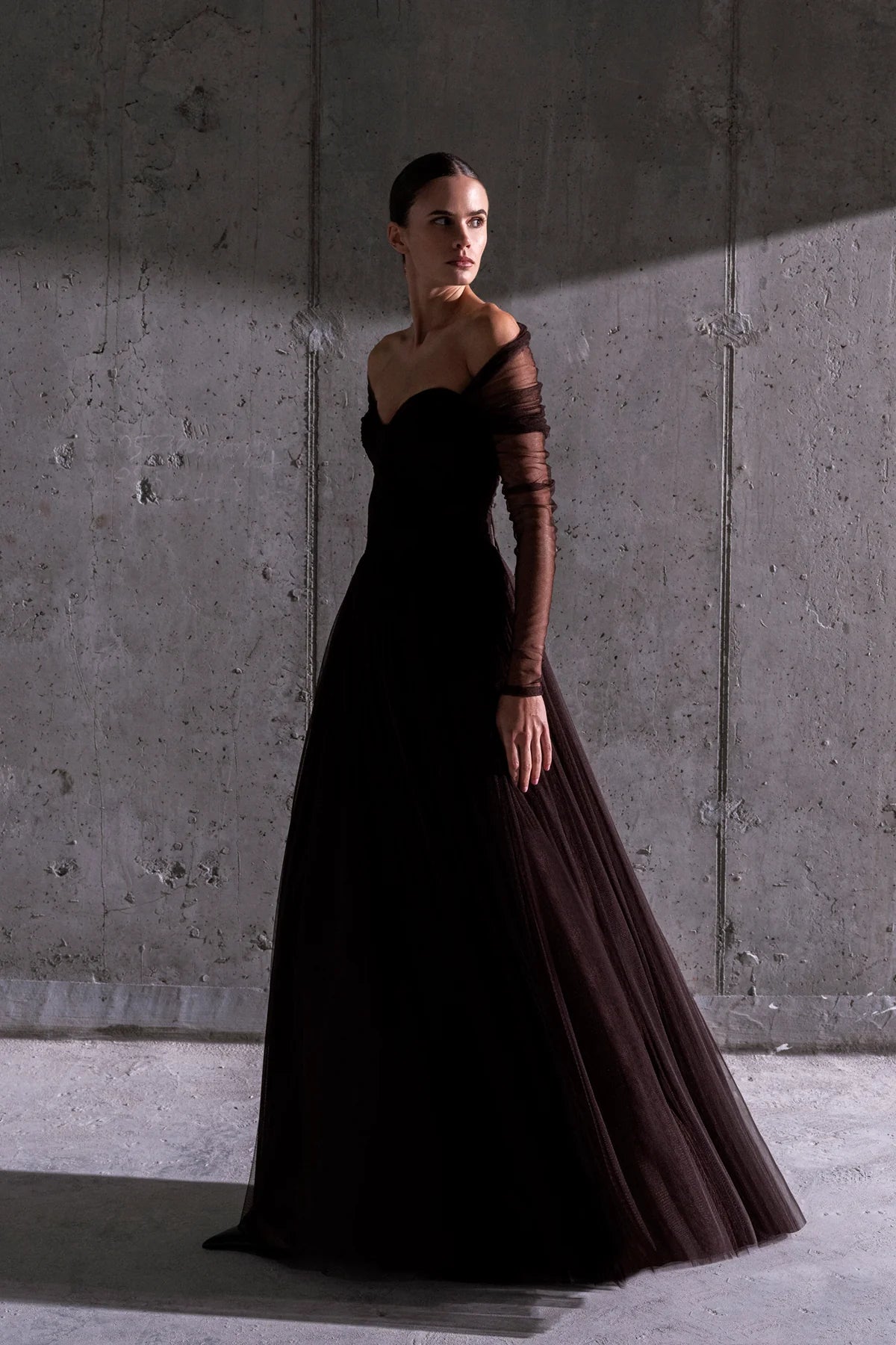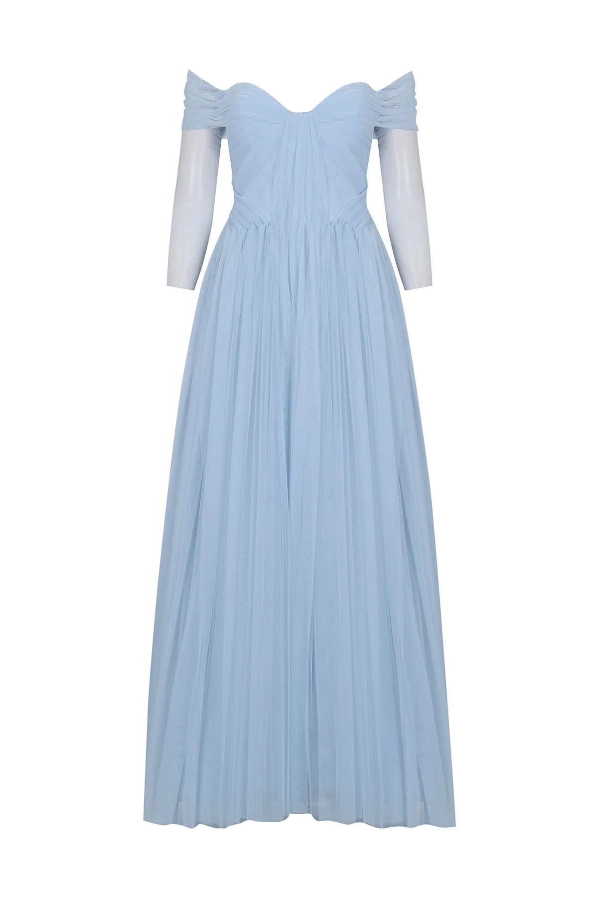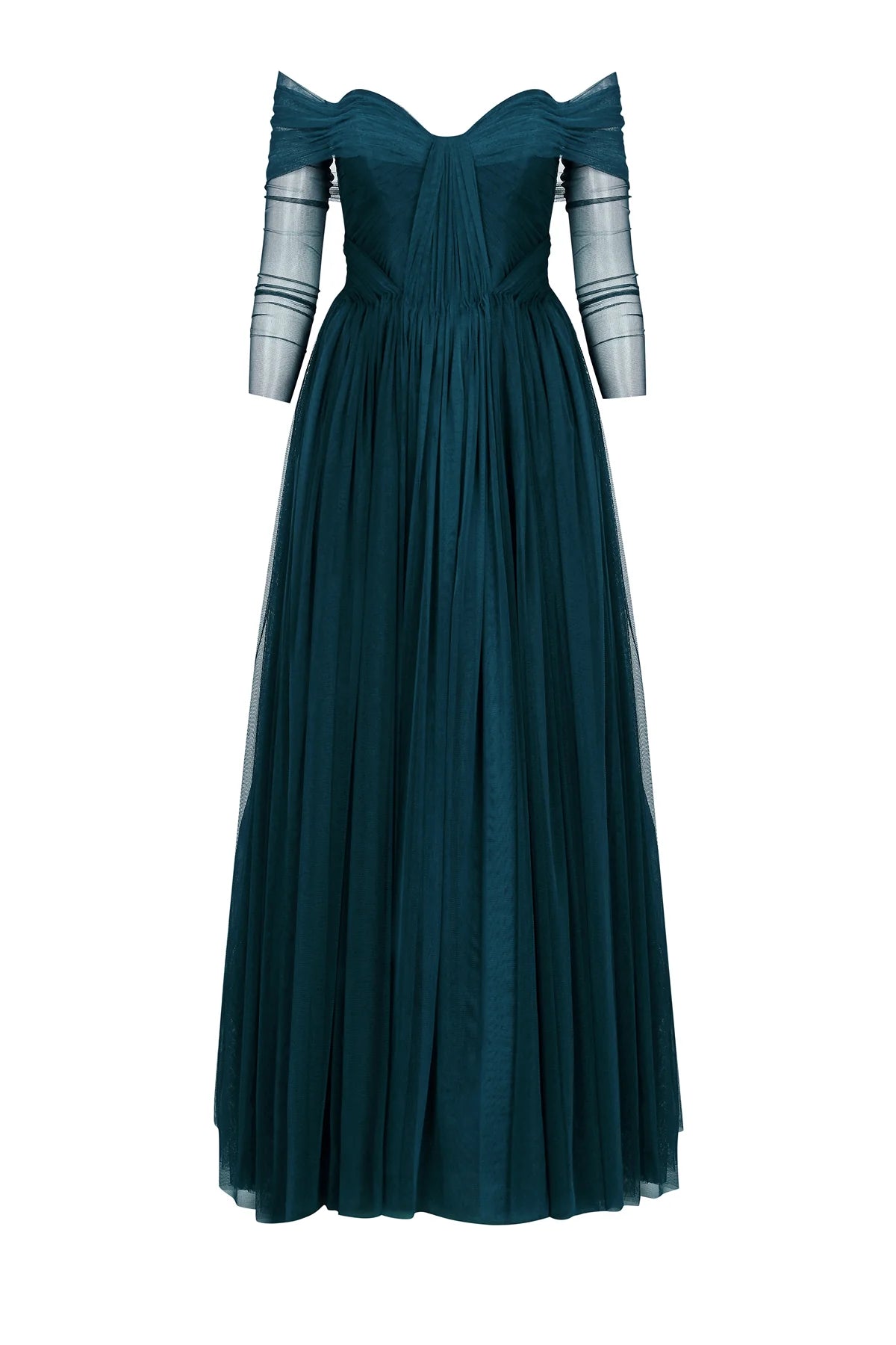 TRANSPARAN TÜL KOLLU STRAPLEZ UZUN ABİYE 2220S