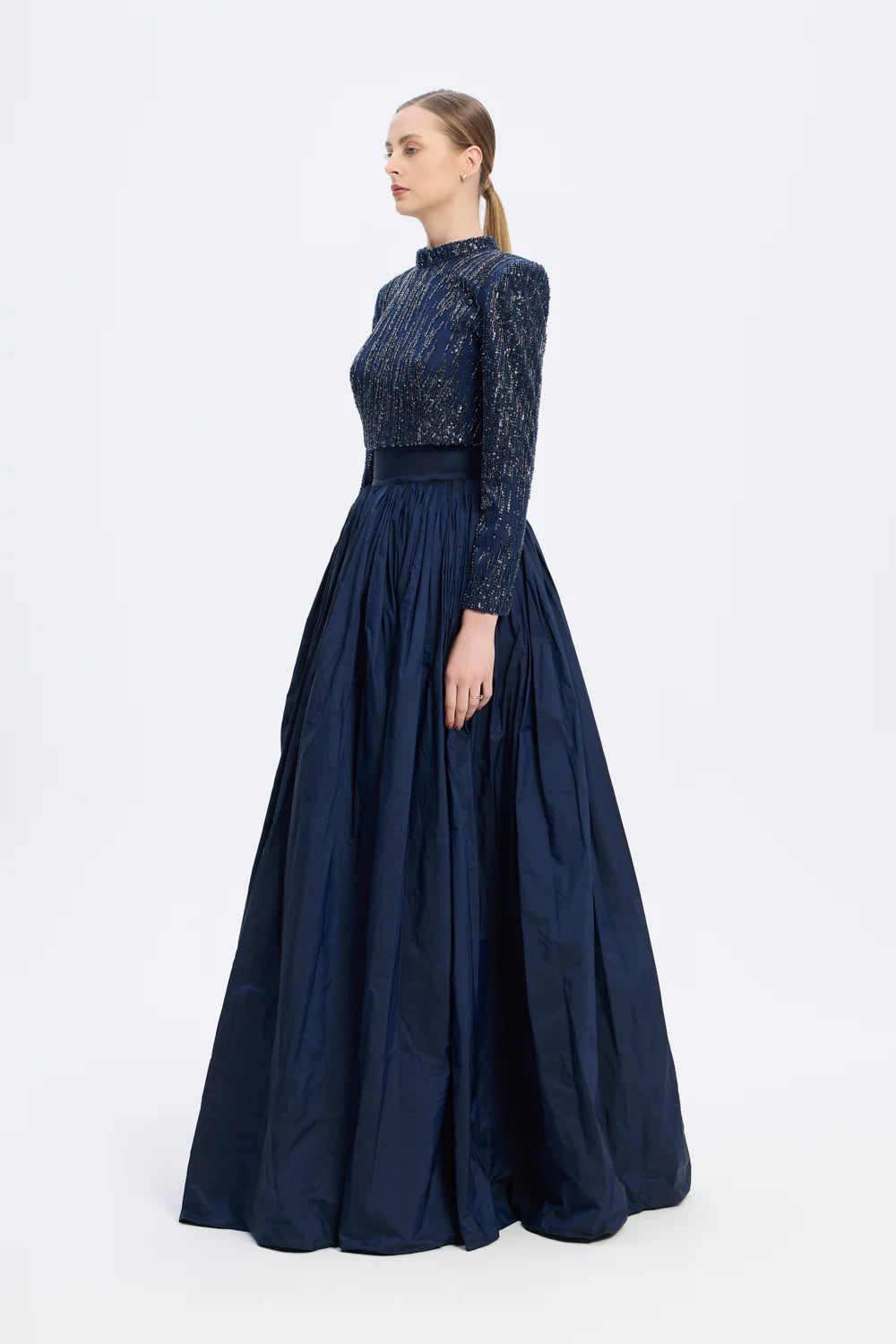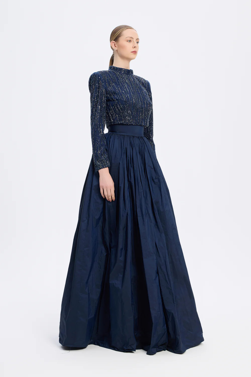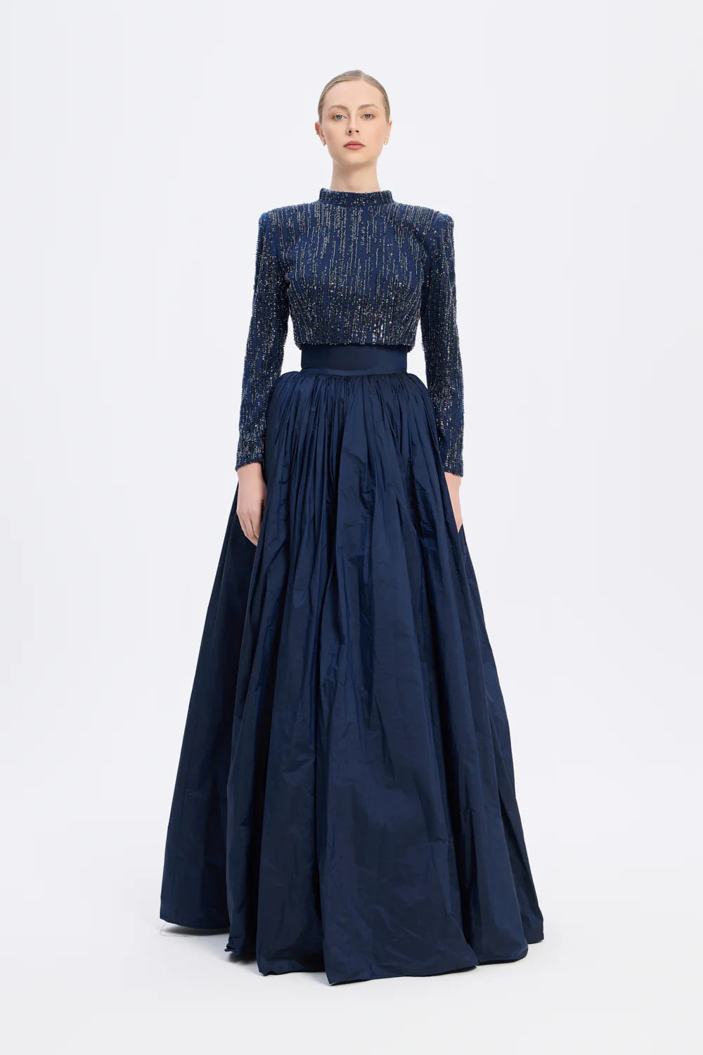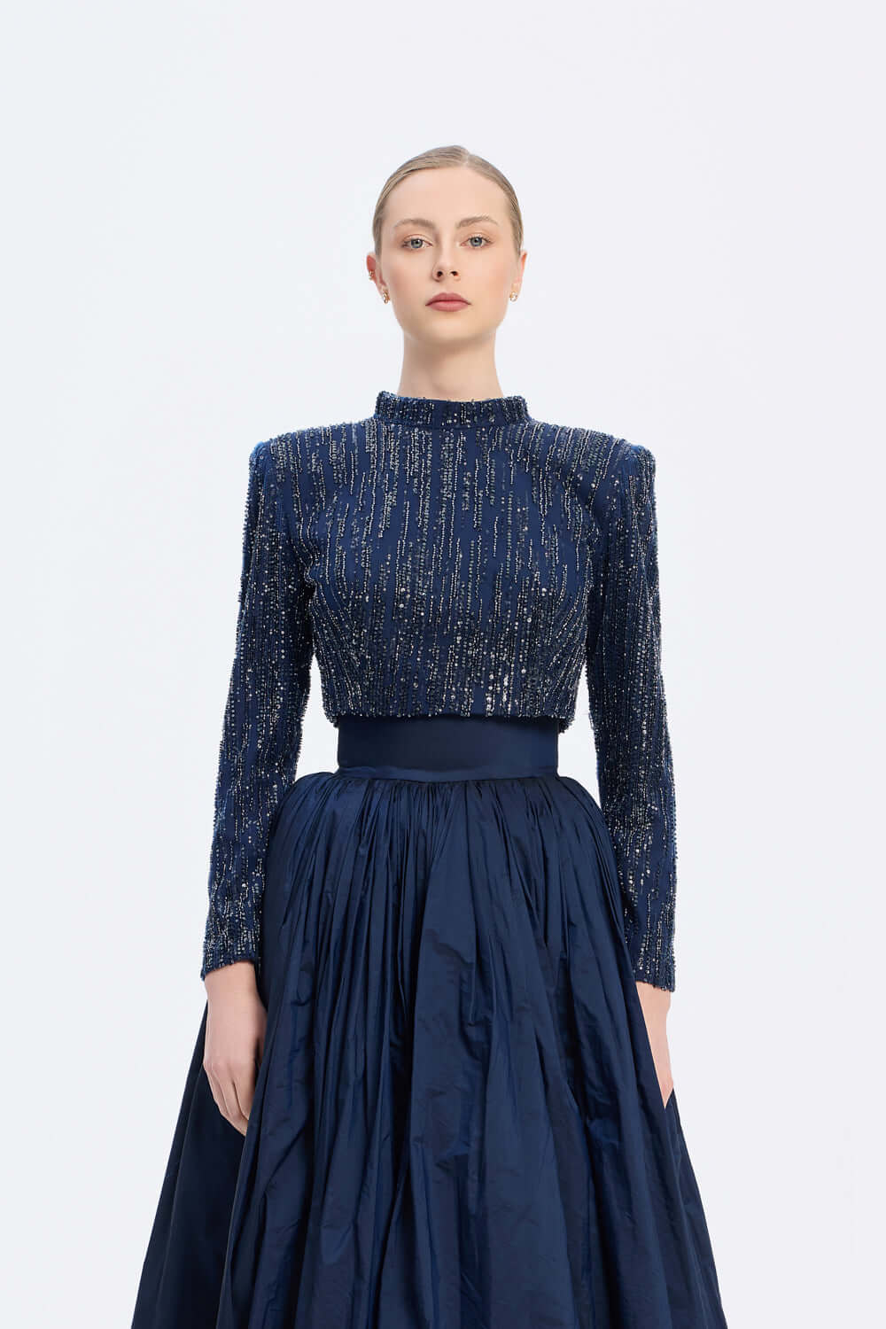 UZUN KOLLU TAŞLI CEKET & TAFTA ETEK TAKIM - 9064C