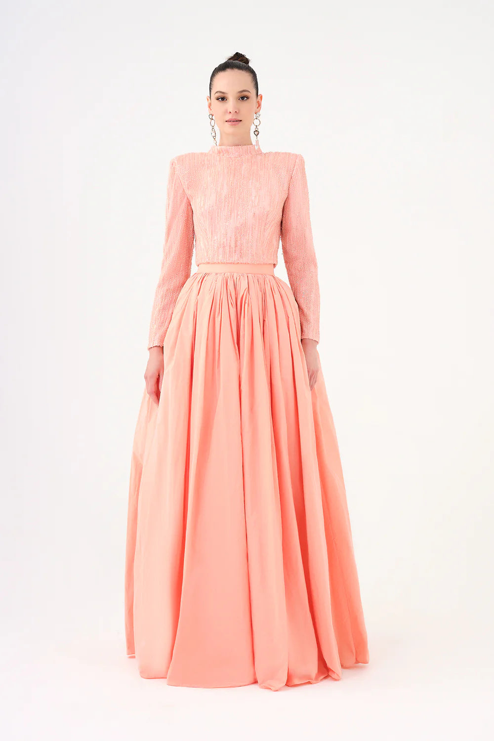 UZUN KOLLU TAŞLI CEKET & TAFTA ETEK TAKIM - 9064C