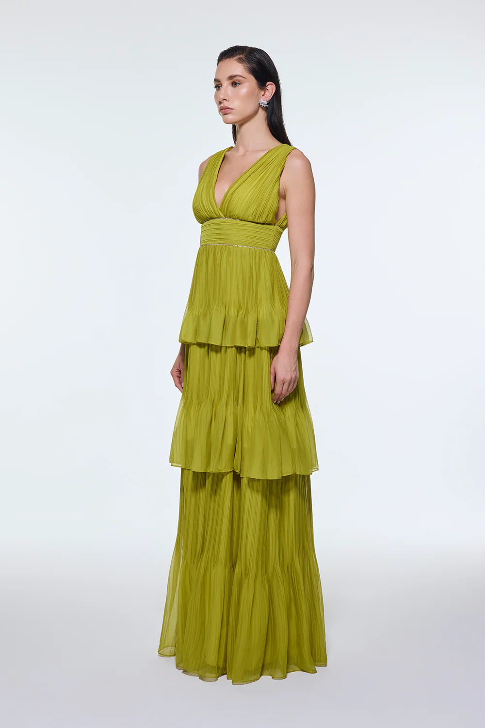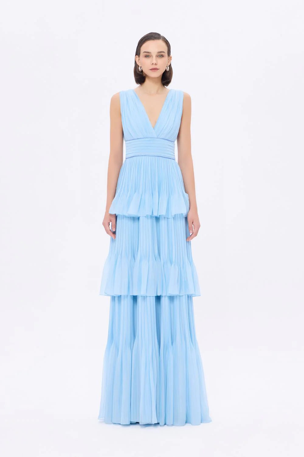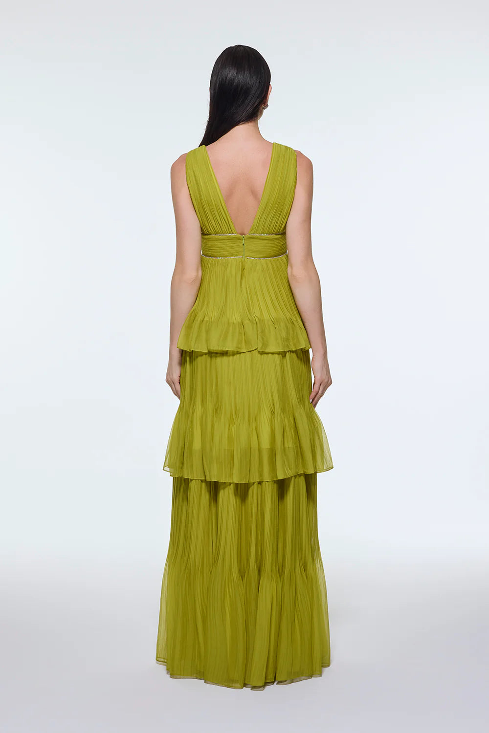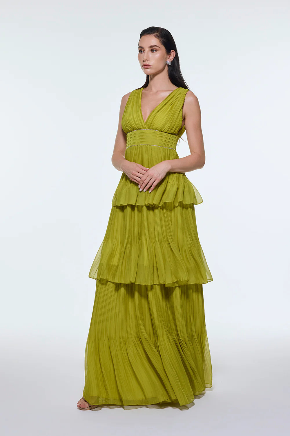 V YAKA VOLANLI ŞİFON UZUN ABİYE ELBİSE - 9274C