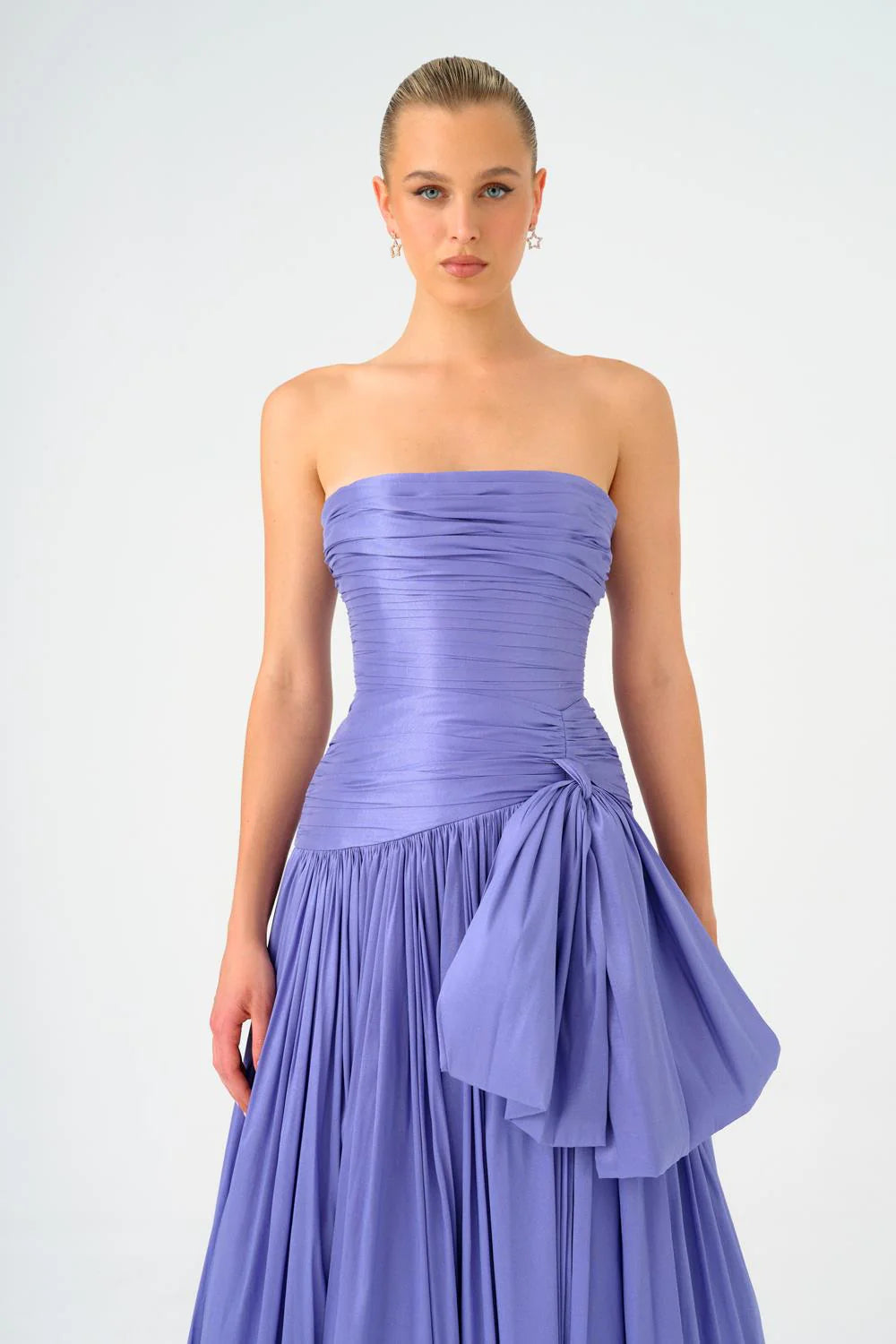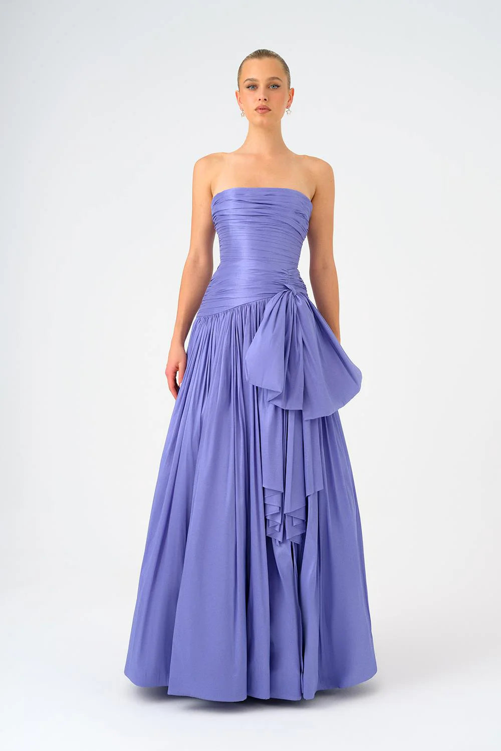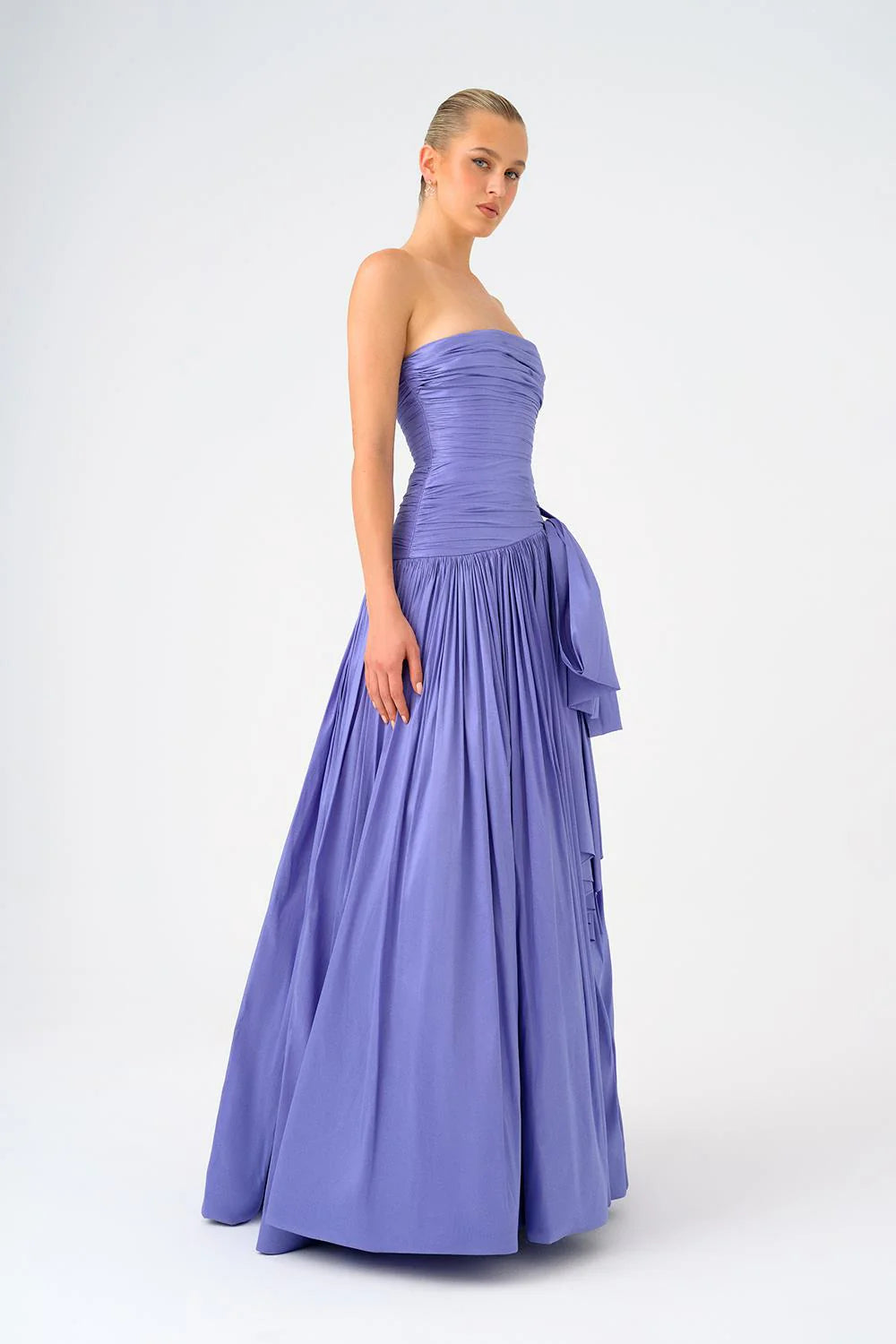 FİYONK DETAYLI STRAPLEZ YAKA TAFTA UZUN ABİYE ELBİSE - 9173C