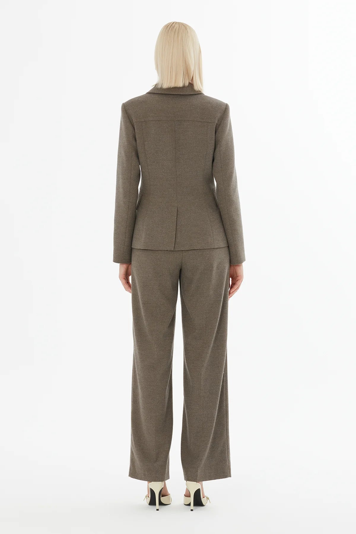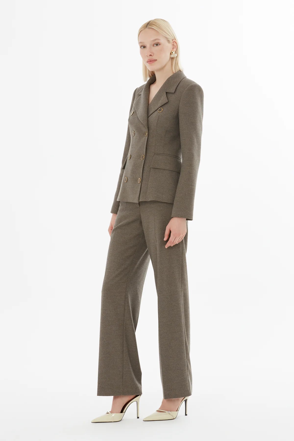 Kruvaze Kapamalı Ceket Ve Pantolonlu Takım