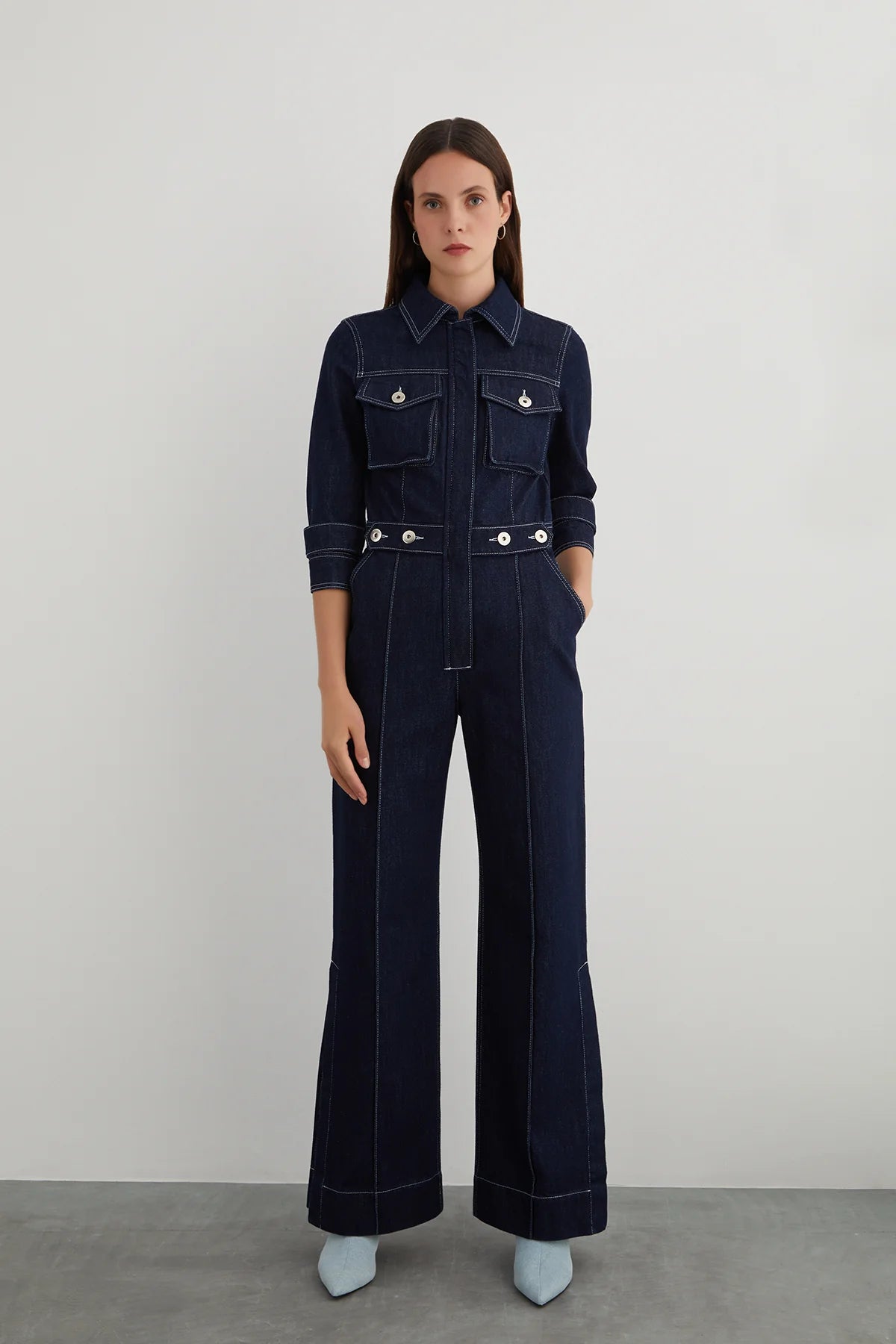 Nikel Düğme Detaylı Yanı Yırtmaçlı Flare Paça Jean Tulum