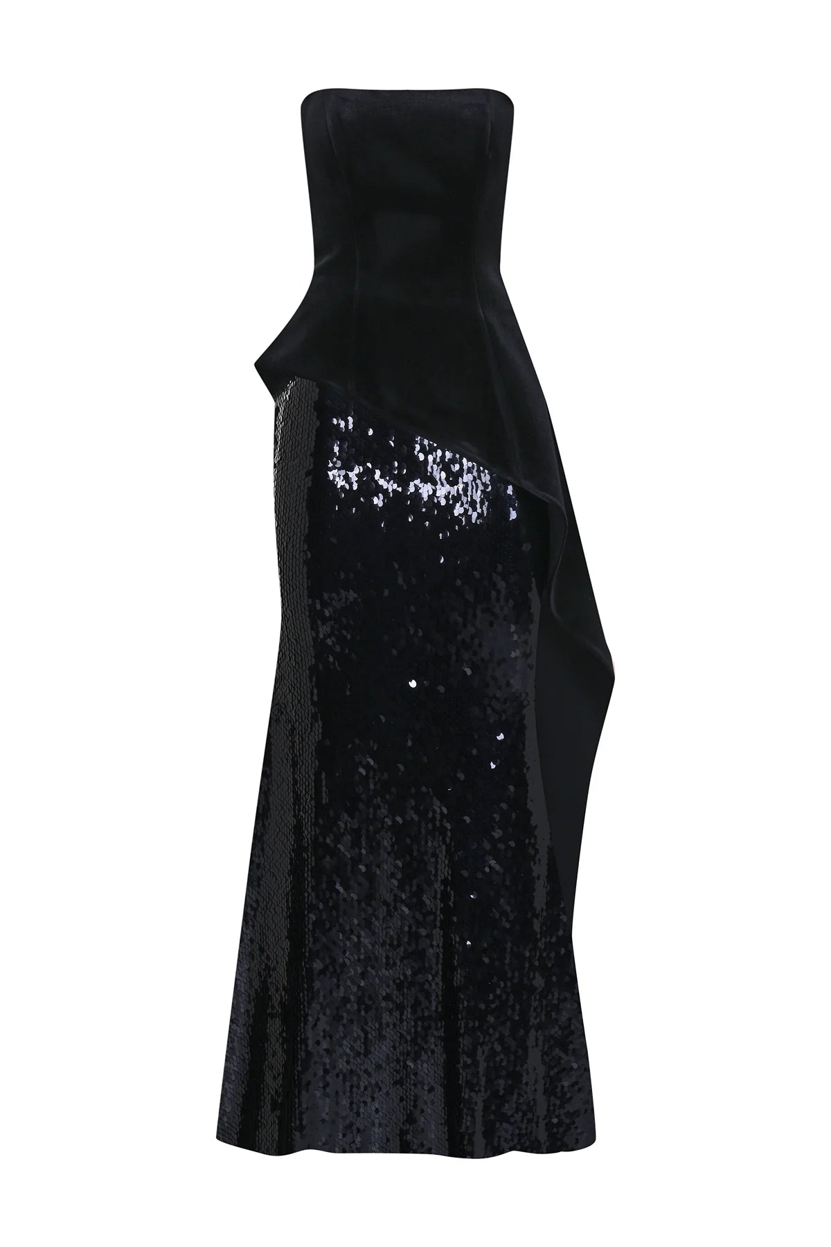 PUL PAYET İŞLEMELİ STRAPLEZ KADİFE ABİYE ELBİSE 2310