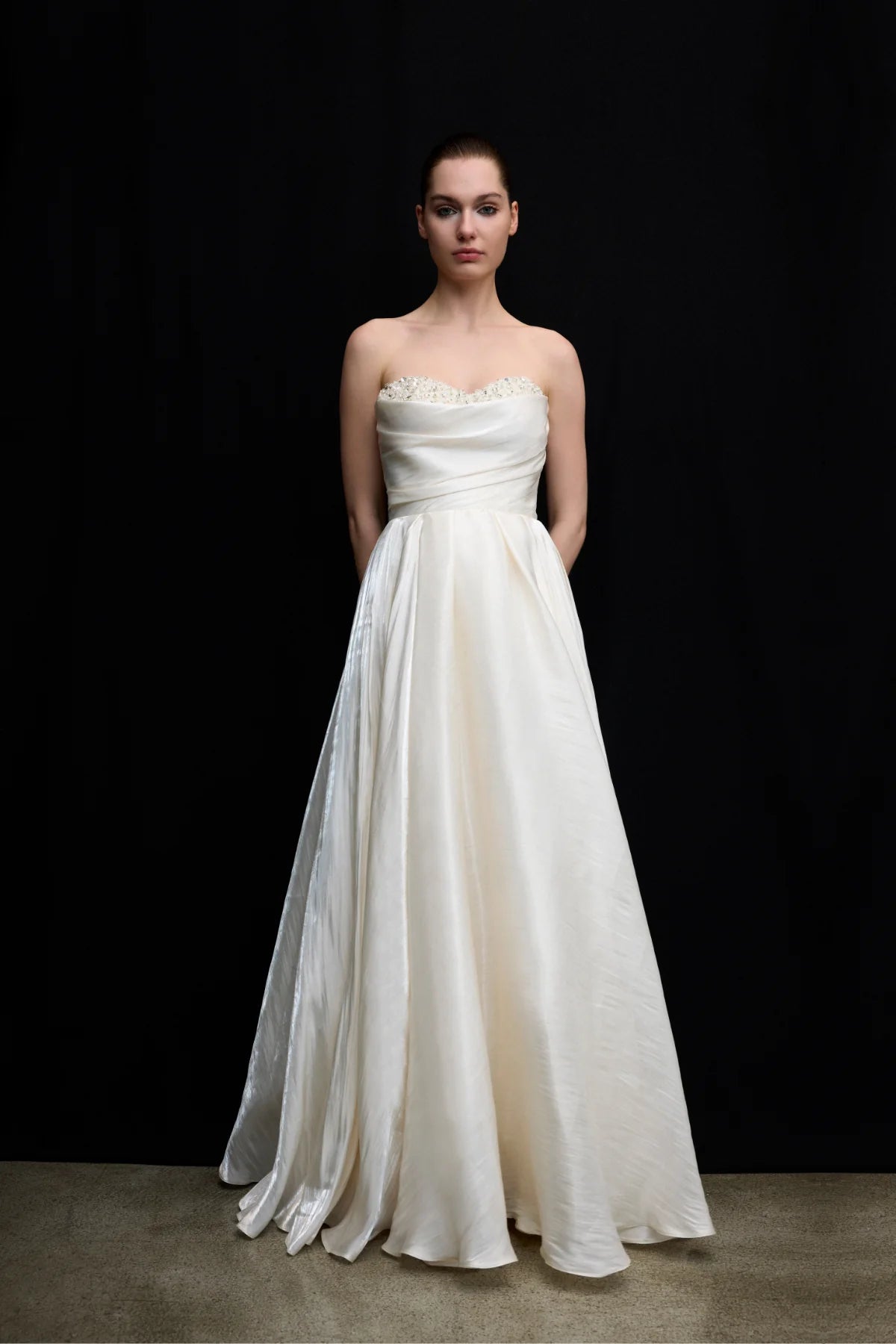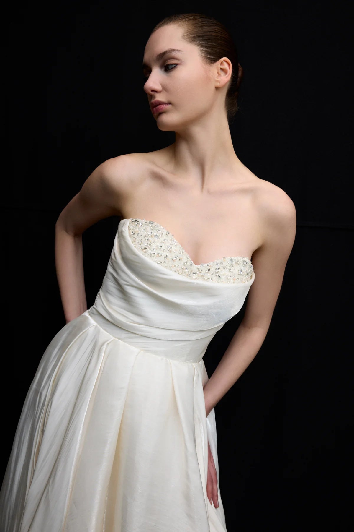 TAŞ İŞLEMELİ STRAPLEZ SATEN ABİYE ELBİSE